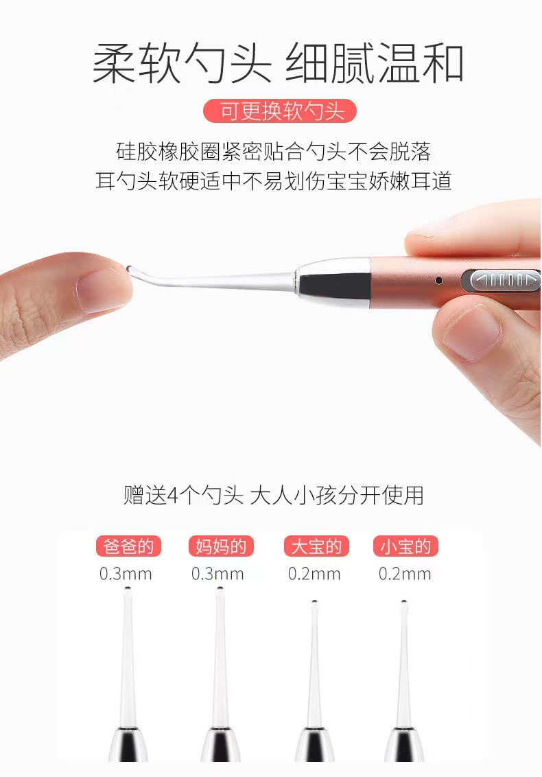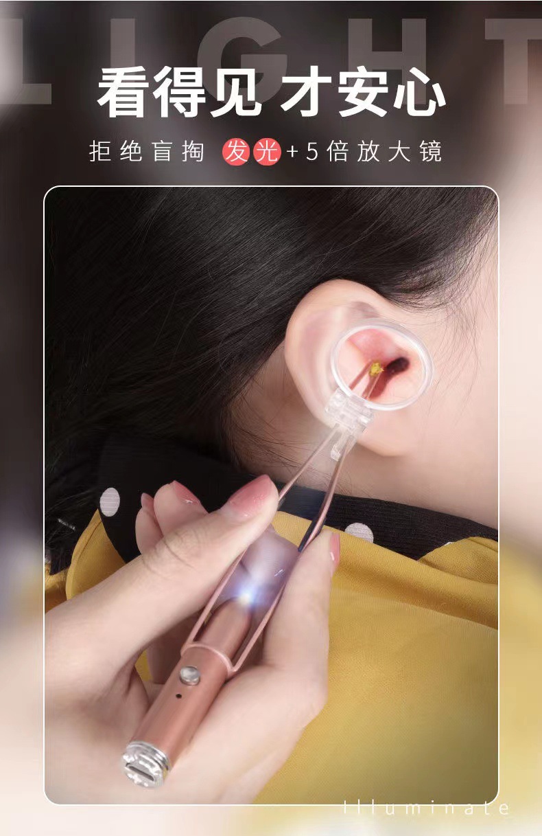 儿童掏耳勺发光耳屎镊子硅胶高级可视耵聍钩充电挖耳采耳专业工具