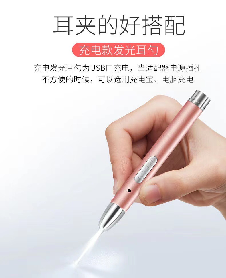 卸売り充電usbインターフェイスの耳抜きスプーンが光る耳抜きスプーンの赤ちゃんの耳抜きスプーンの耳糞ピンセットセットの耳抜きランプ