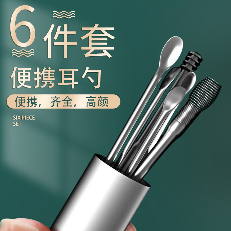 メーカー卸売りステンレス耳スプーン6点セット耳掘りセット螺旋式耳取り清潔耳取りツールセット
