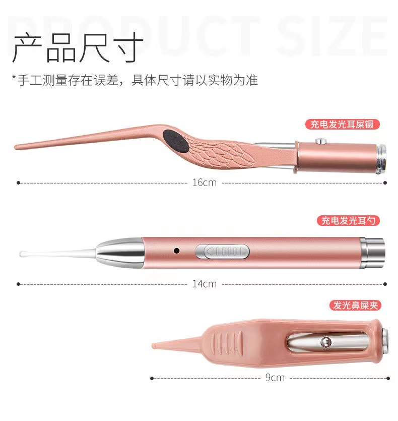 Usb充電採耳ピンセット子供発光耳スプーンランプ付き耳糞ピンセット視認採耳工具
