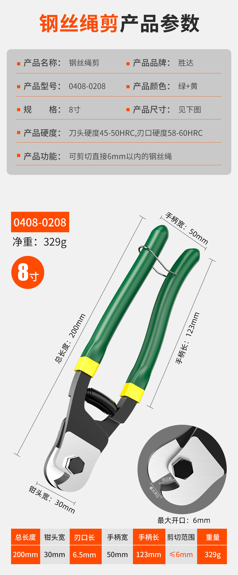 勝達ワイヤロープハサミ8インチブレーキ線ハサミ鋼線ハサミ鉛シールハサミ破壊ハサミ断線ハサミ卸売り