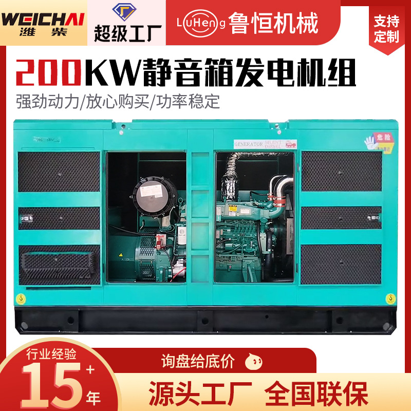 潍柴200kw静音型大型ディーゼル発電機500kw全自動発電機予備電源