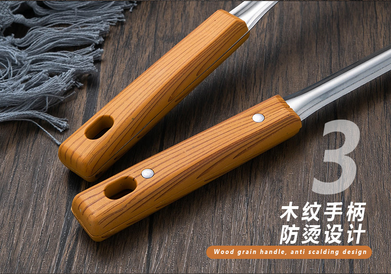 厚いステンレス鍋シャベル家庭用木柄の長い柄の熱い台所の炒め物のシャベルのスプーンのシャベルのセット