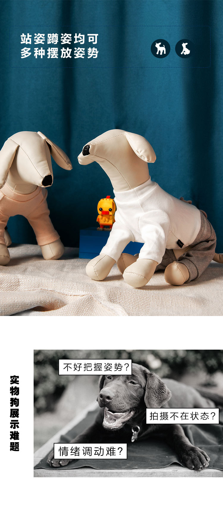 狗服装展示道具狗猫衣服拍照静态假模型软PU狗模特宠物猫模假模特