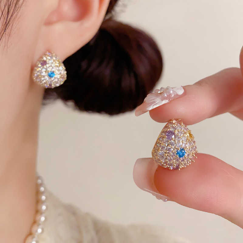 フランスのレトロな気質の香港風の精巧なジルコンの丸い耳のボタンの小さい大衆の設計は軽くて豪華な高級感のファッションのイヤリングの女性です。