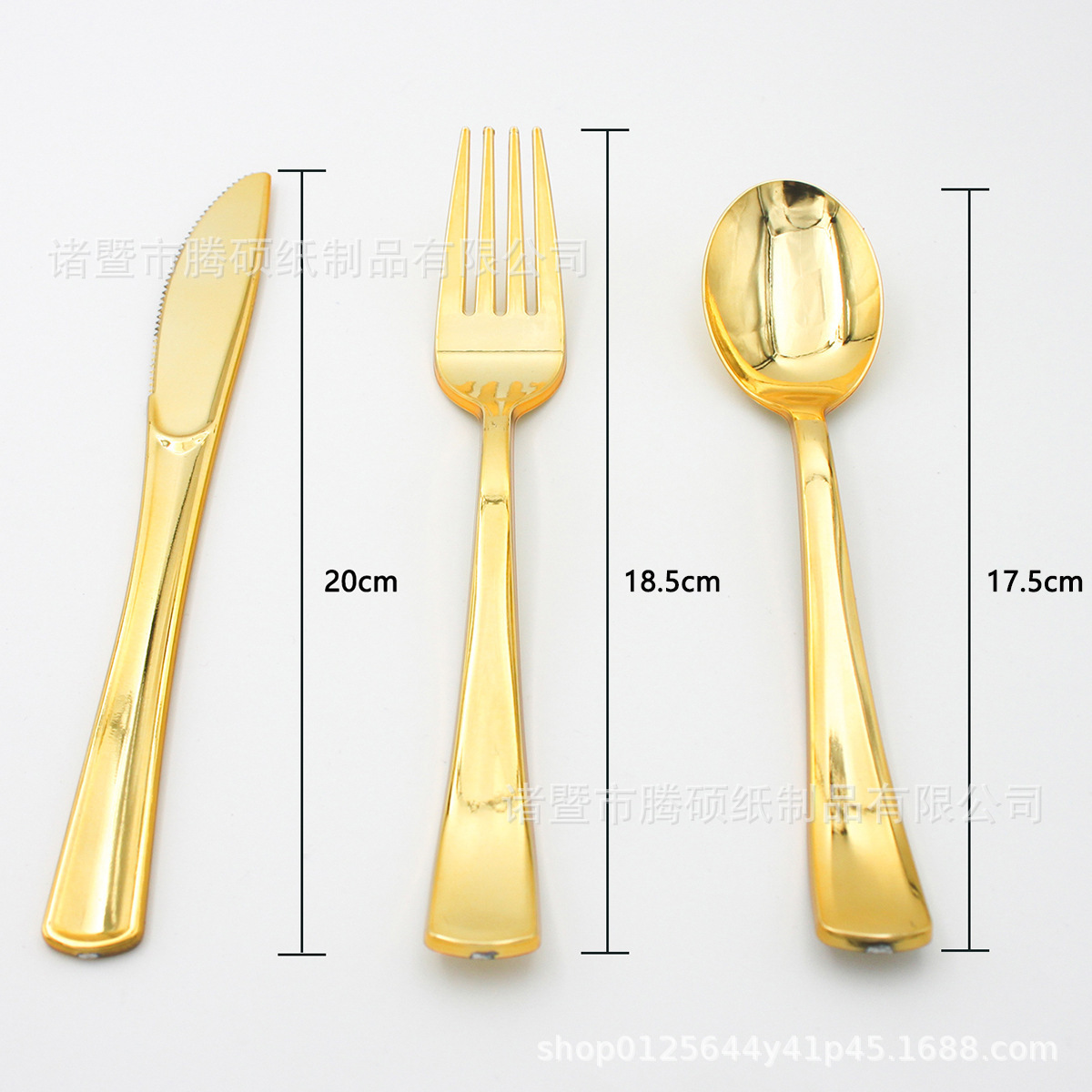 スポット使い捨て電気メッキプラスチックゴールドローズゴールドシルバーメッキナイフ、フォーク、スプーン使い捨て食器卸売