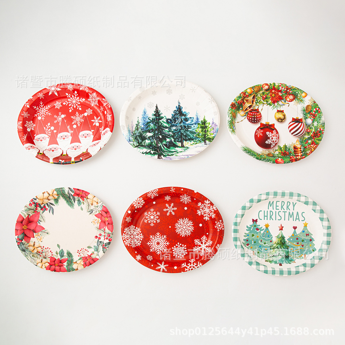 新型使い捨てクリスマステーマ楕円紙皿アマゾン12インチ大楕円皿食器パーティー紙皿