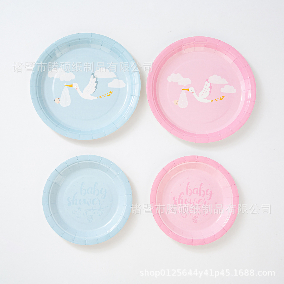 ベビーシャワー クロスボーダーパーティー 誕生日 使い捨て紙コップ 紙皿 ティッシュ ブルー背景 クラウドカップとプレートセット