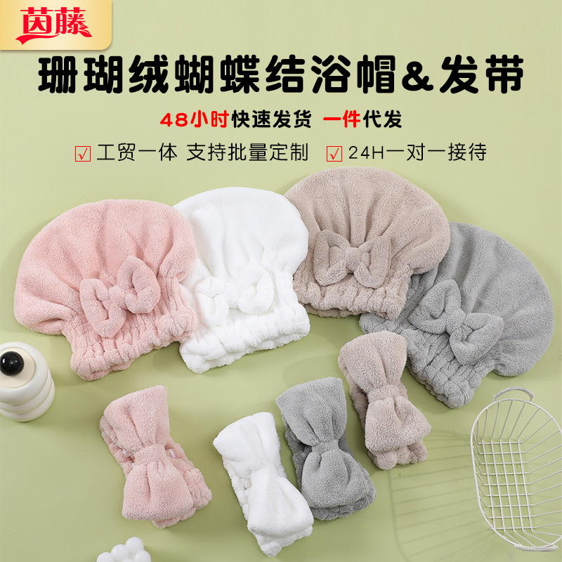 シャワーキャップの女性は、超吸水速乾かわいい蝶ネクタイのサンゴのベルベットの髪タオルを厚くしてスカーフ卸売りを拭きます