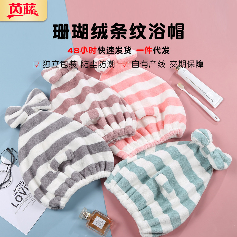 コーラルベルベットカチオンリボンヘアドライキャップ吸水速乾ストライプヘアドライタオルプリンセススタイルシャワーキャップ外国貿易クロスボーダー