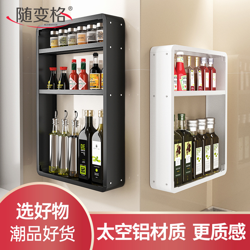 宇宙アルミキッチン壁掛け式棚穴なし多層調味料調味料油塩みそ酢収納ラック