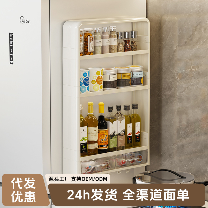 新款厨房窄款调料架台面抽拉式多层防尘收纳油盐酱醋调味料置物架