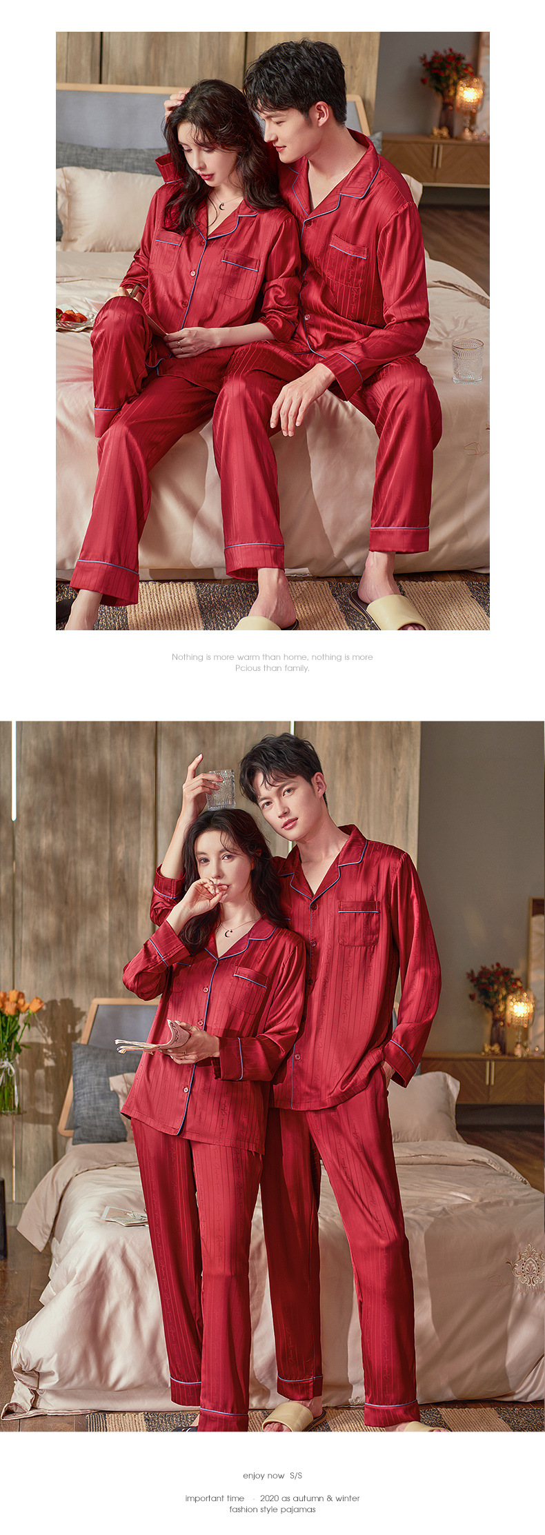 軒の美しいカップルのパジャマの女性の春と秋の長袖の本命年の2つのセットの赤い新婚の結婚する部屋の服の男性