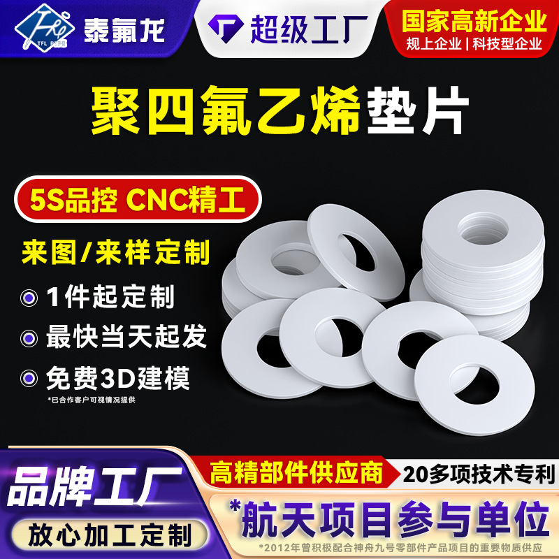 四氟垫片PTFE法兰垫铁氟龙聚四氟乙烯垫圈耐高温密封垫片定 制厂