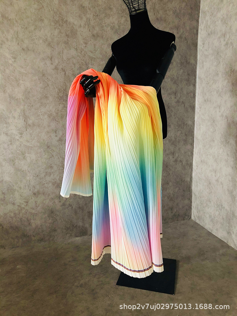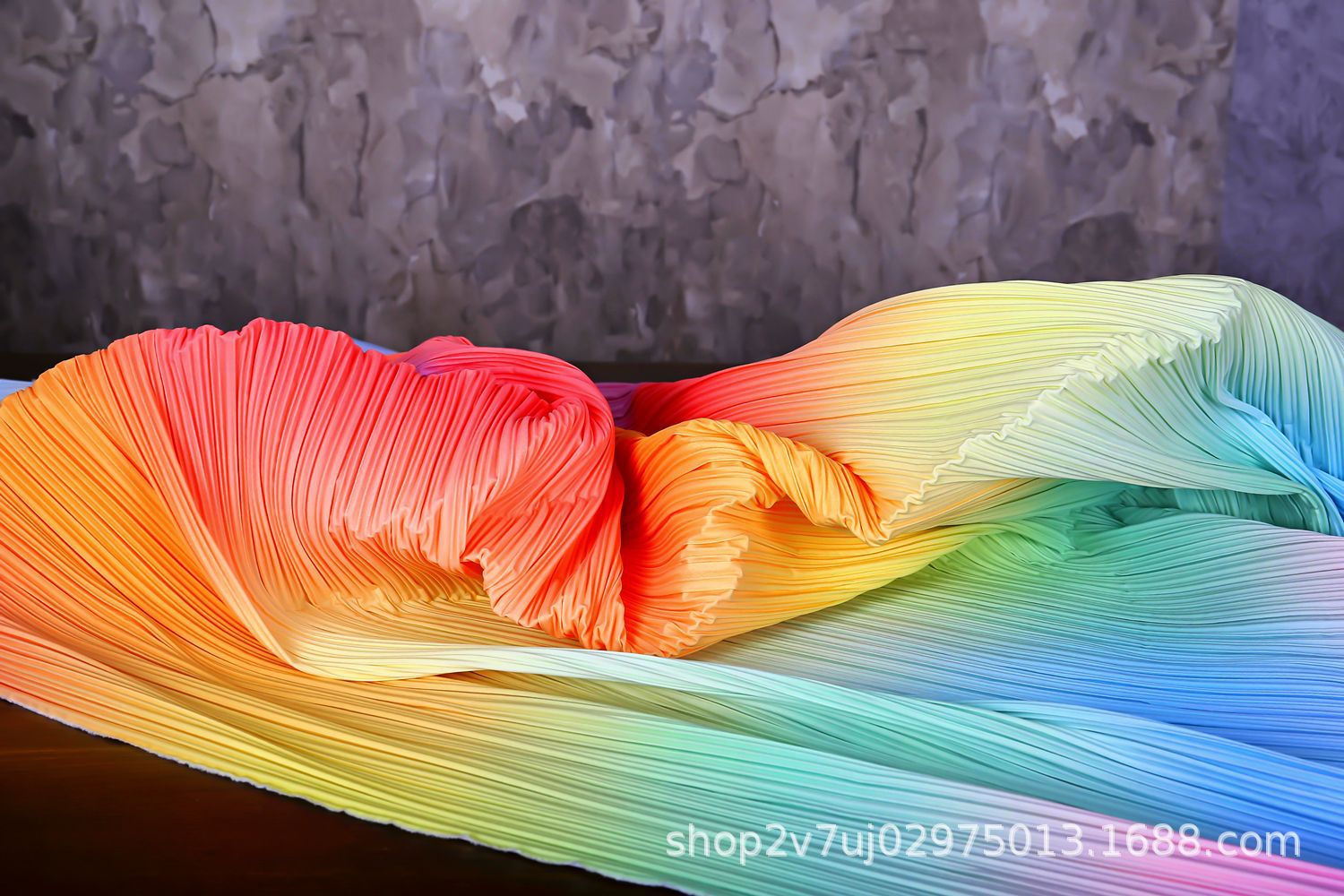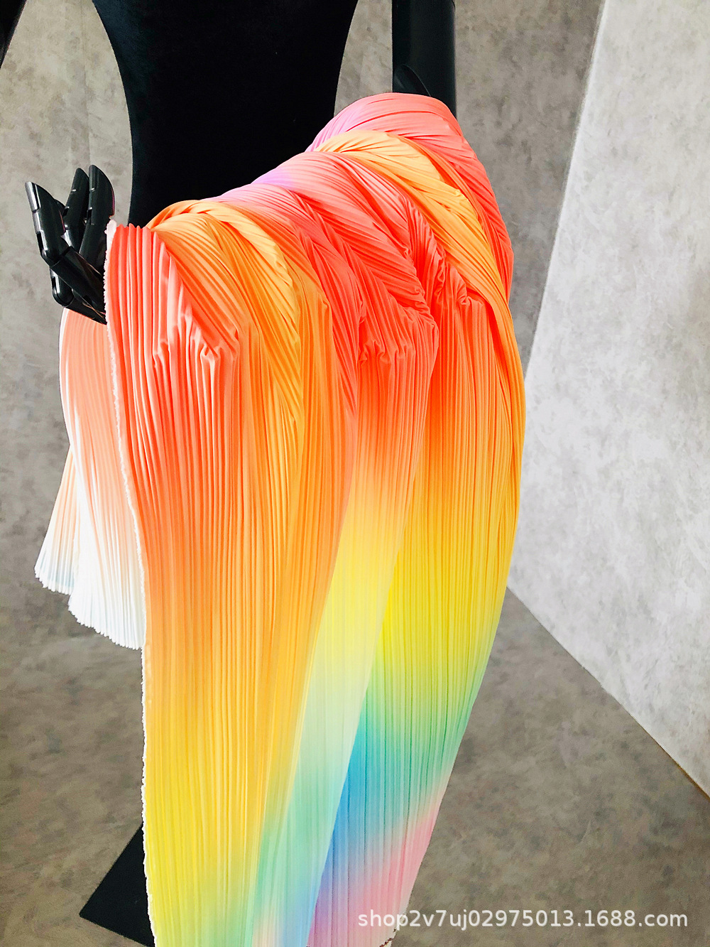 三宅の一生のしわの布地の筋理の百のしわのグラデーションの形の創意は手作りの虹の装飾画の背景の布を改造します。
