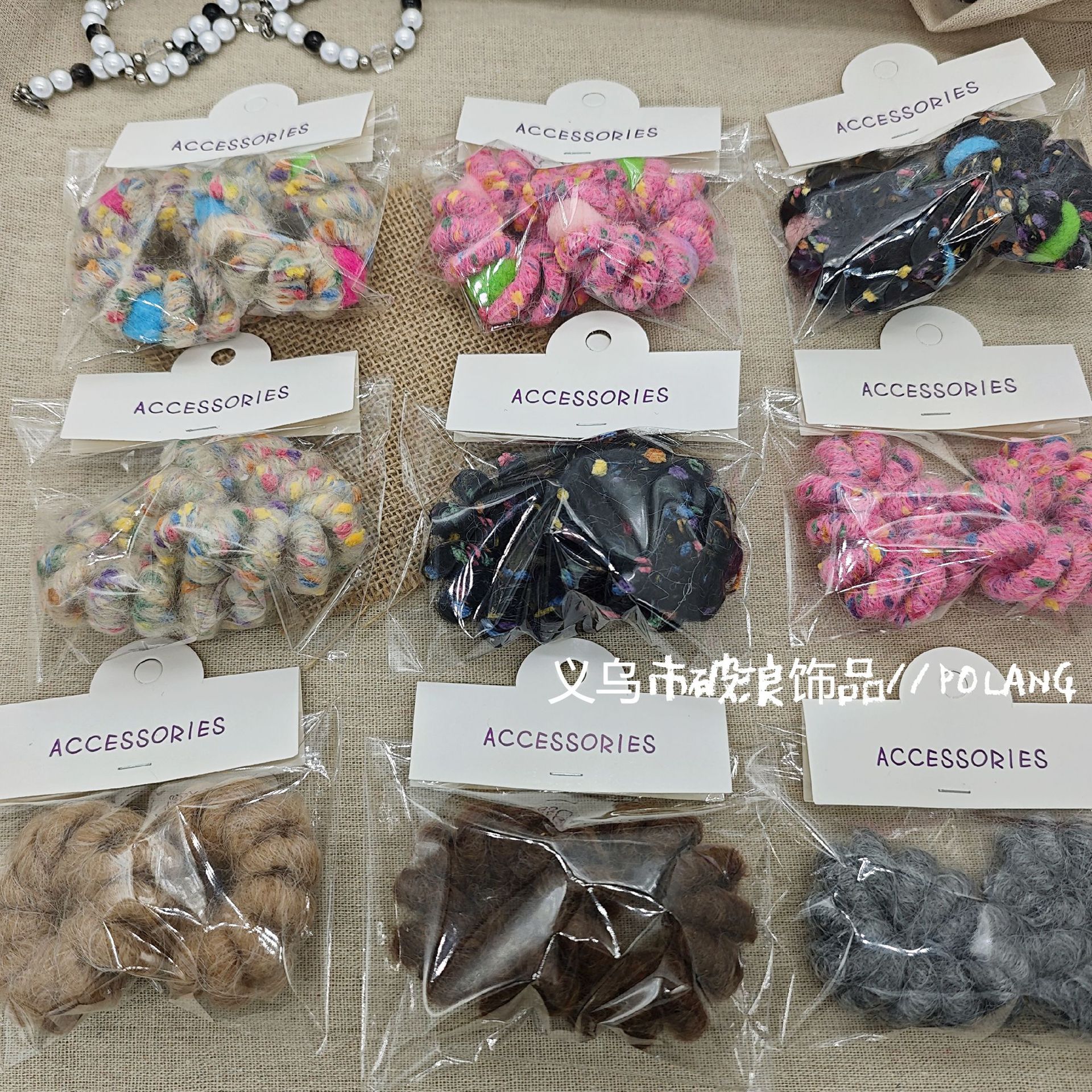 秋冬彩色毛线电话线发圈仿羊绒球头绳儿童发饰韩版手工缠绕发饰