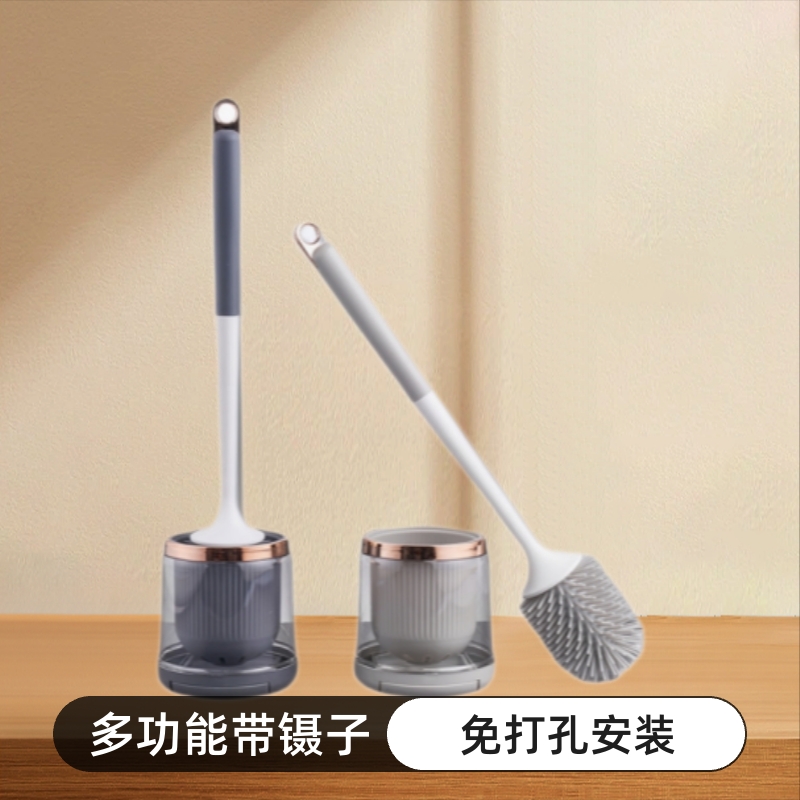 新款高级无死角硅胶马桶刷子带底座挂壁式收纳套装加长卫生间跨境
