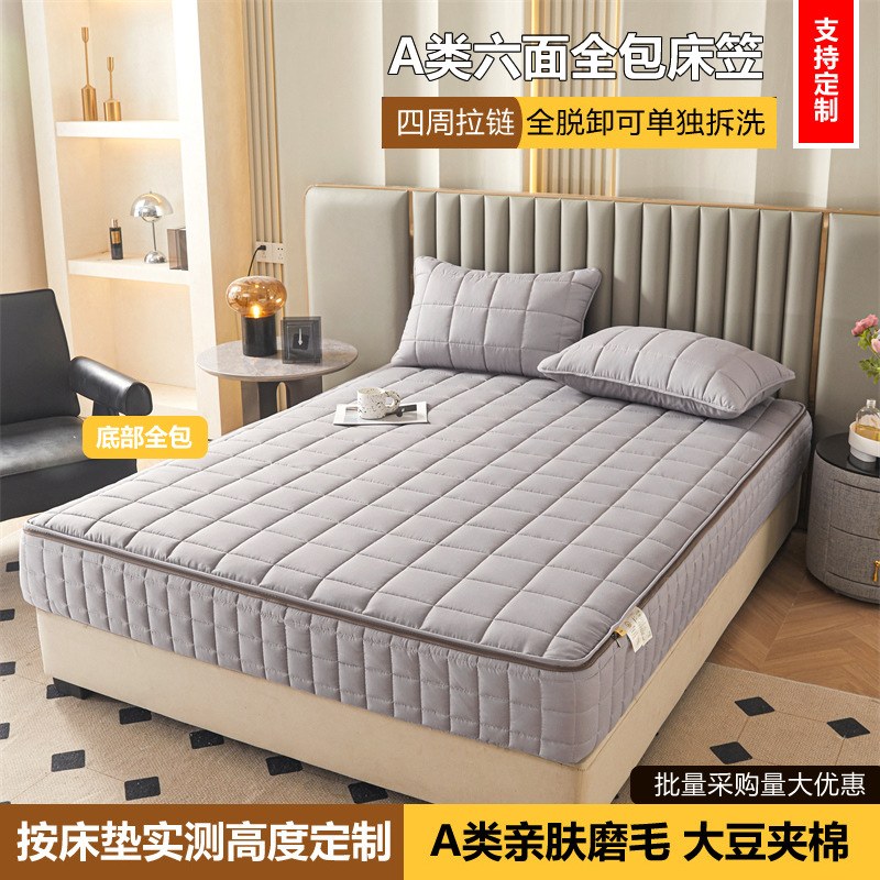 越境A級綿入りベッドシーツ、六面締め込み起毛キルティングベッドシーツ、大豆綿入りマットレスカバー、カスタムメイドベッドカバー
