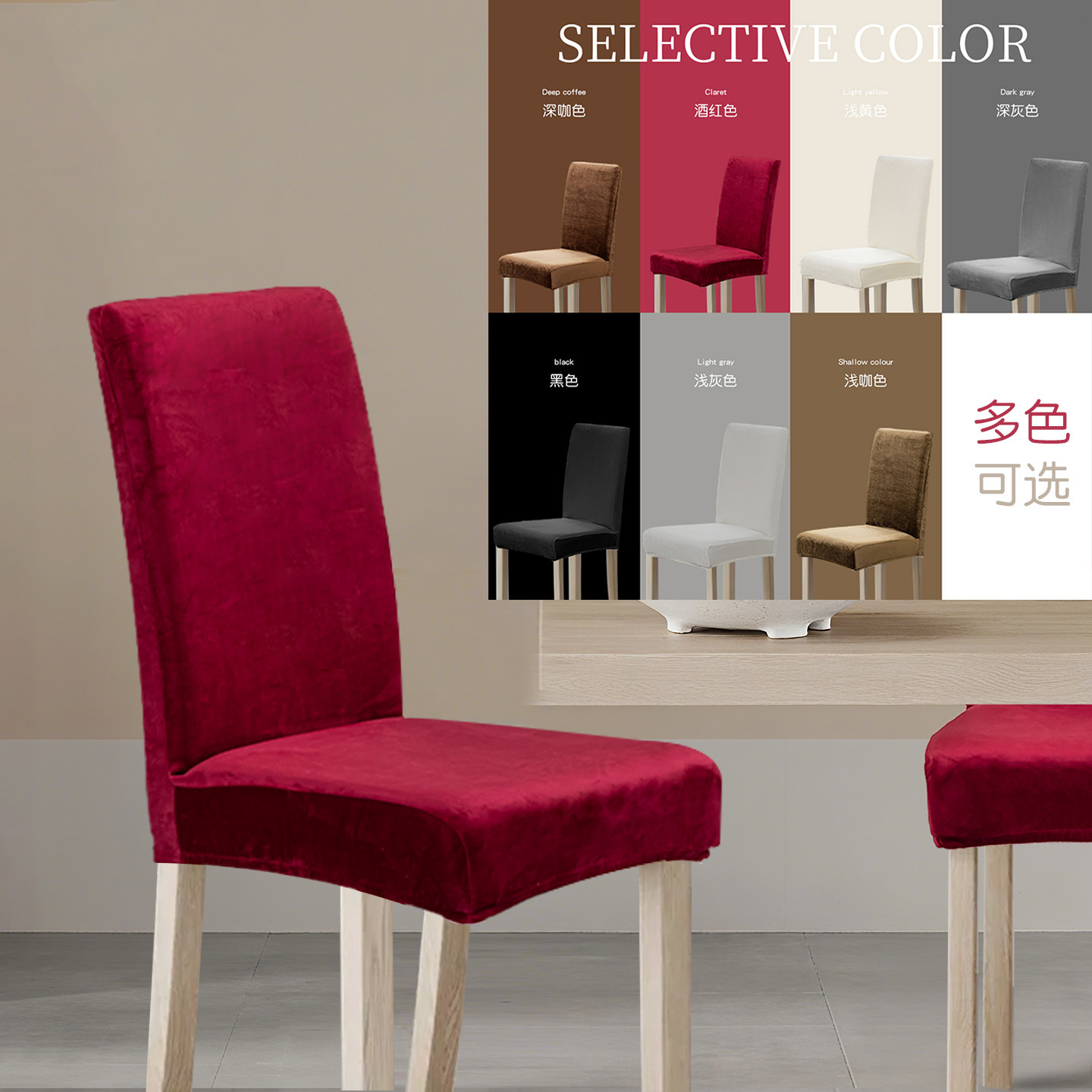 クロスボーダー純色椅子カバー高級感弾力家庭用テーブルカバー椅子カバー背もたれ一体メーカー卸売り