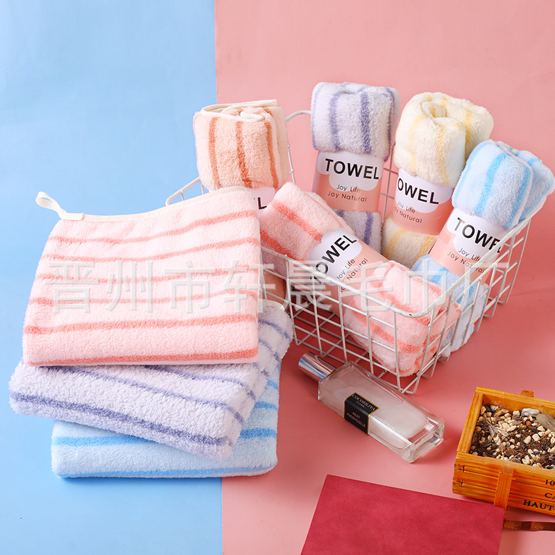 メーカー卸売りサンゴパイル縦縞タオル35*75枚のギフトタオル洗顔吸水タオルはロゴを決めることができる