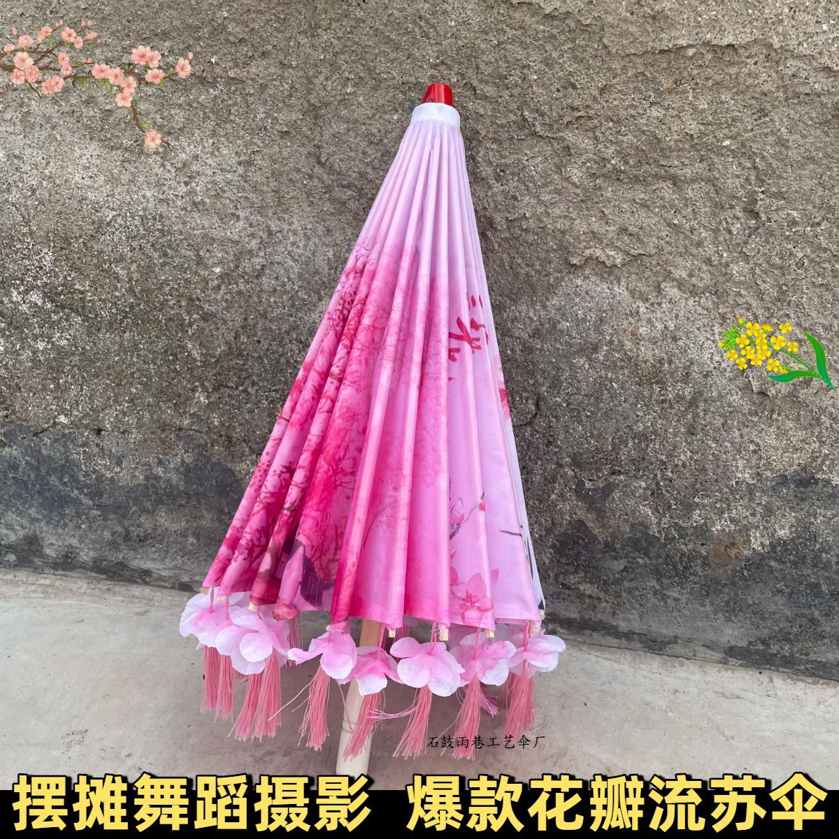 舞蹈伞花瓣流苏绸布伞古装伞旗袍走秀伞演出道具古代伞汉服古风伞