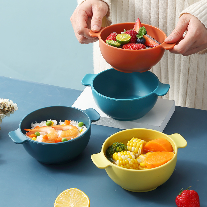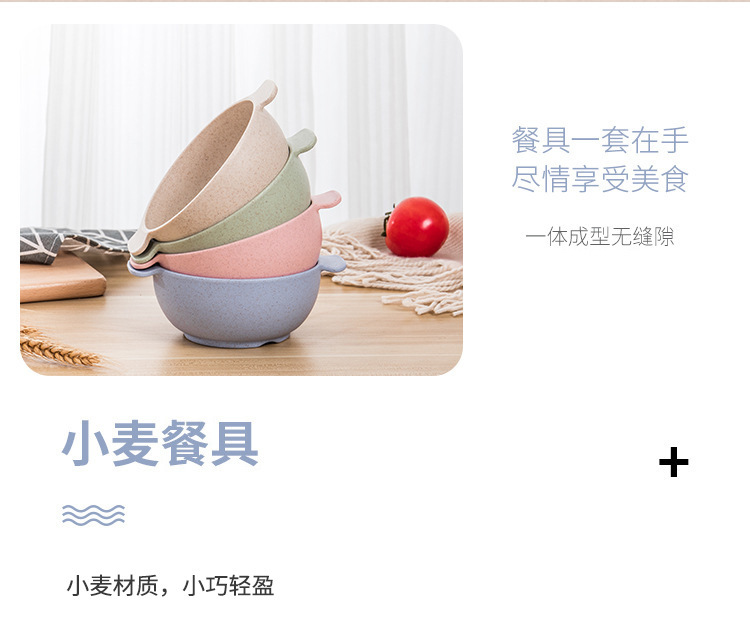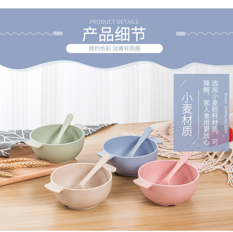小麦秸秆碗儿童宝宝饭碗汤碗防烫双耳碗学生宿舍泡面碗燕麦碗批发