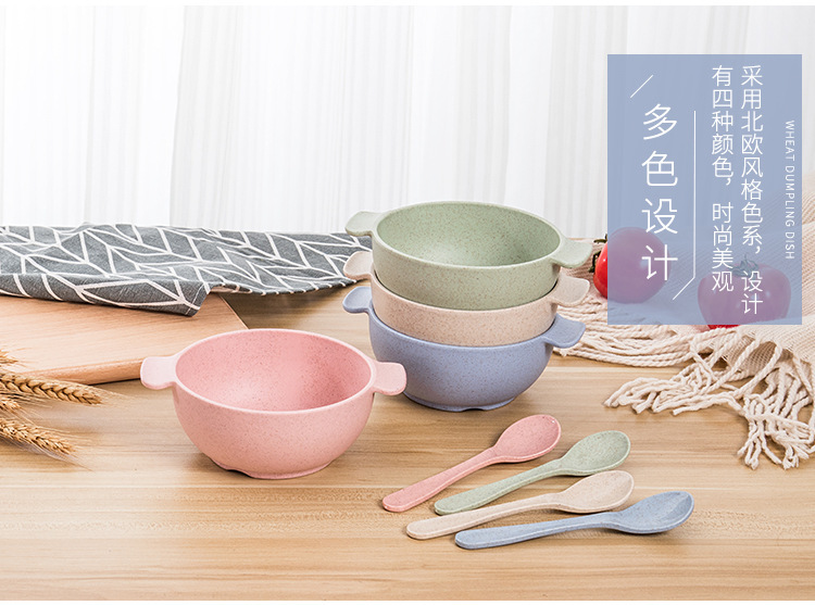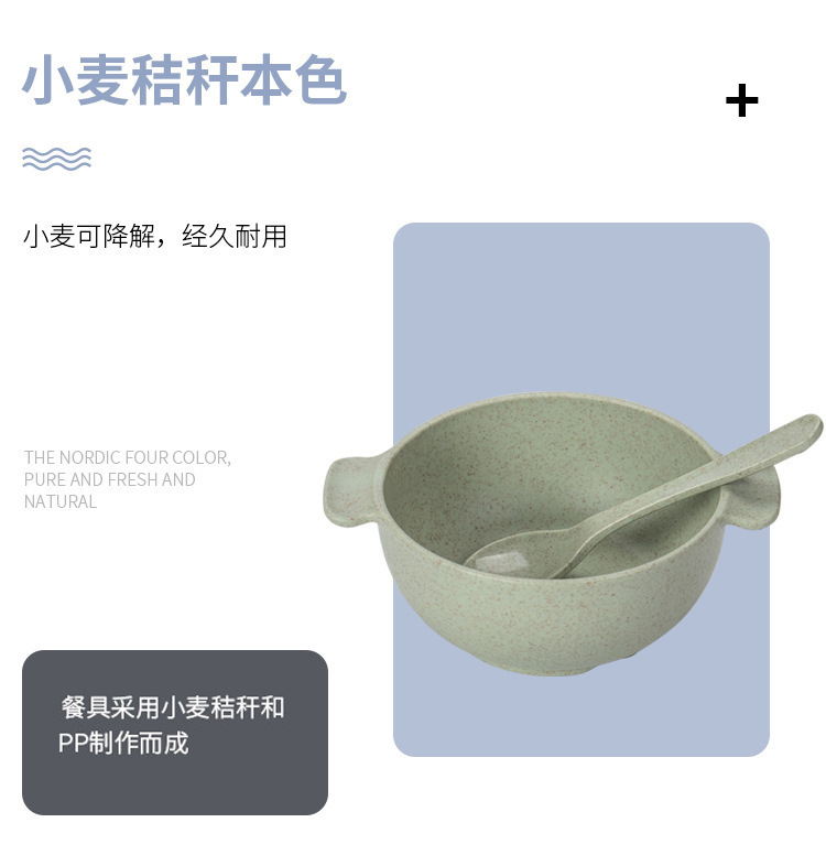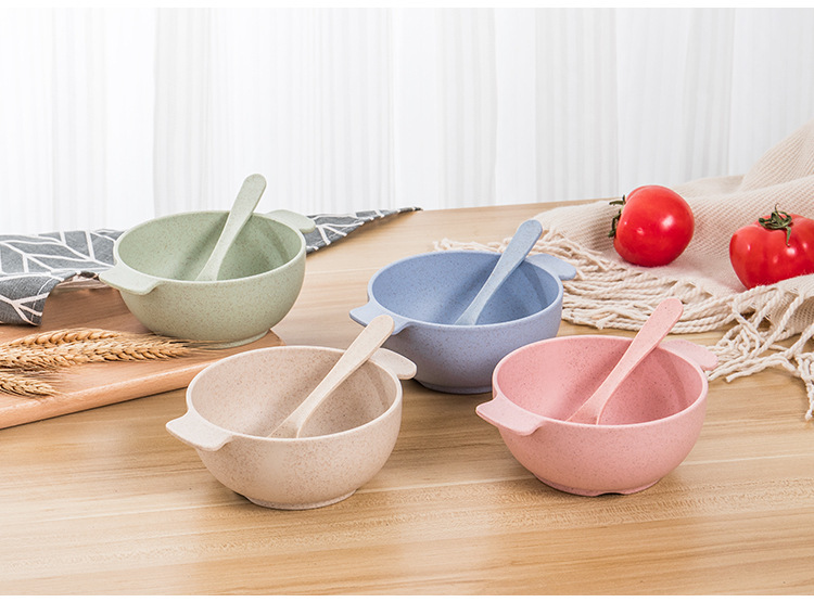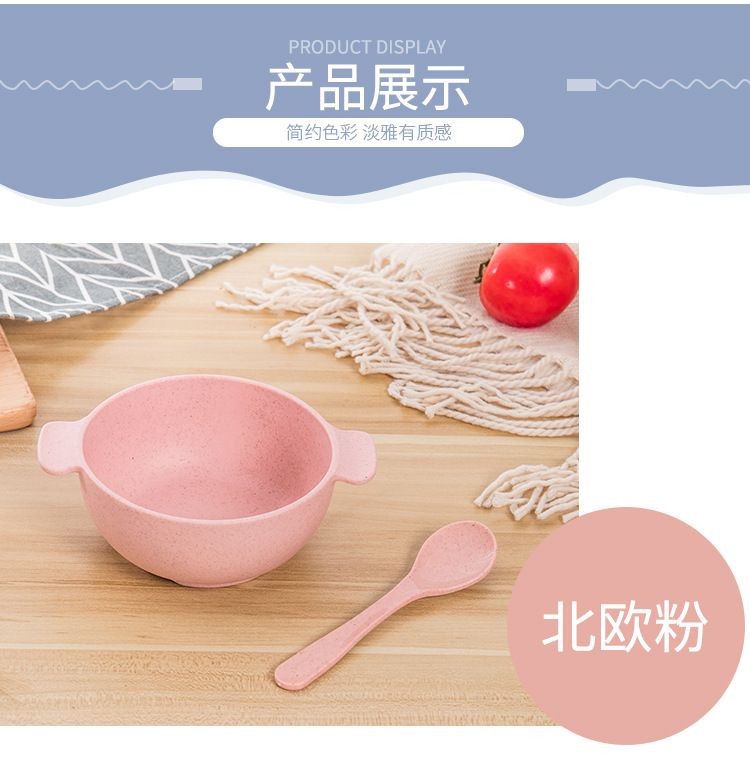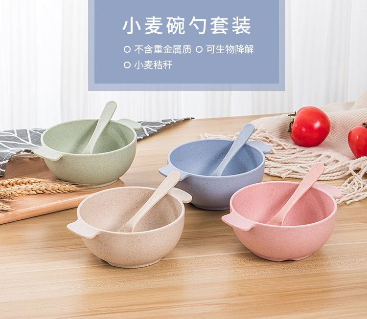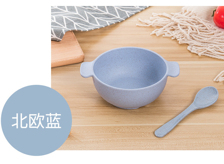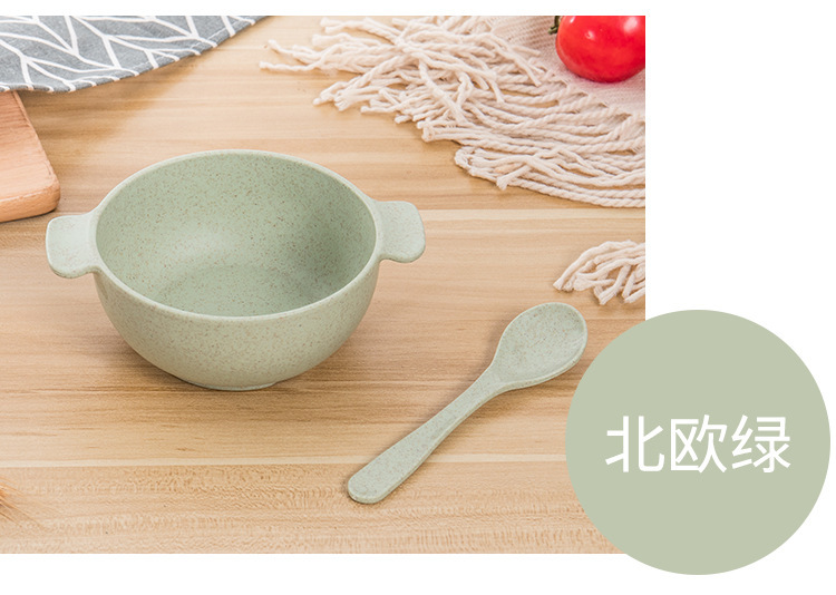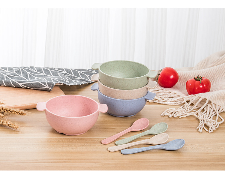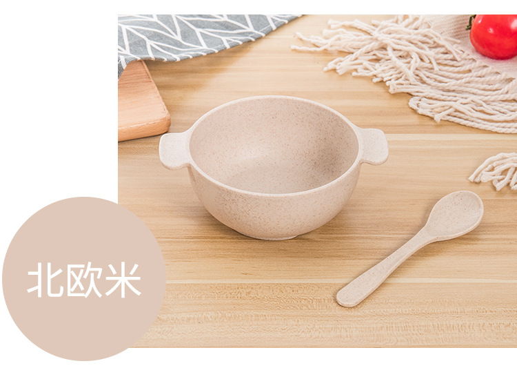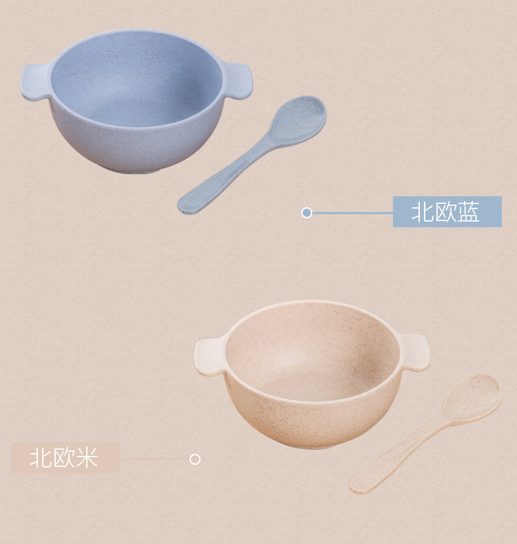 小麦わら子供食器スプーンセット家庭用乳児補助食器幼稚園赤ちゃんご飯スープ茶碗プレゼントロゴ