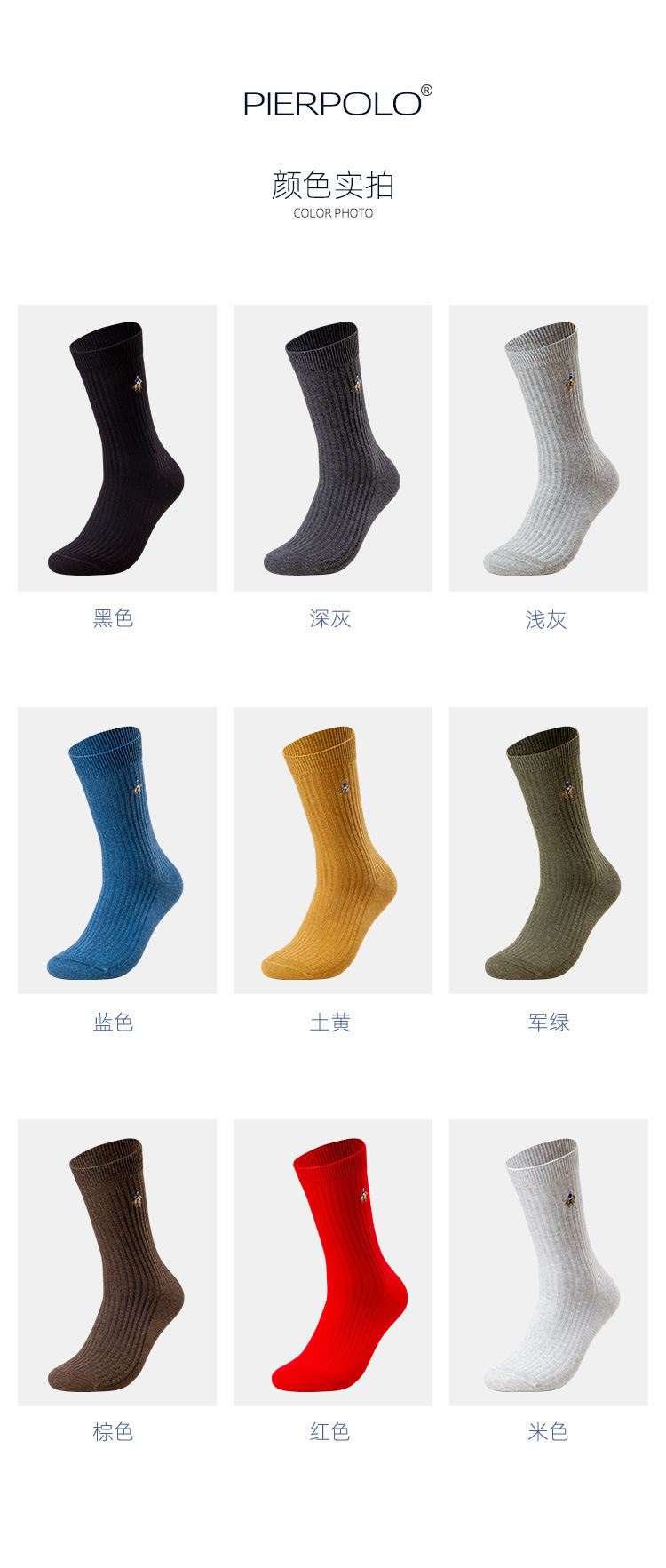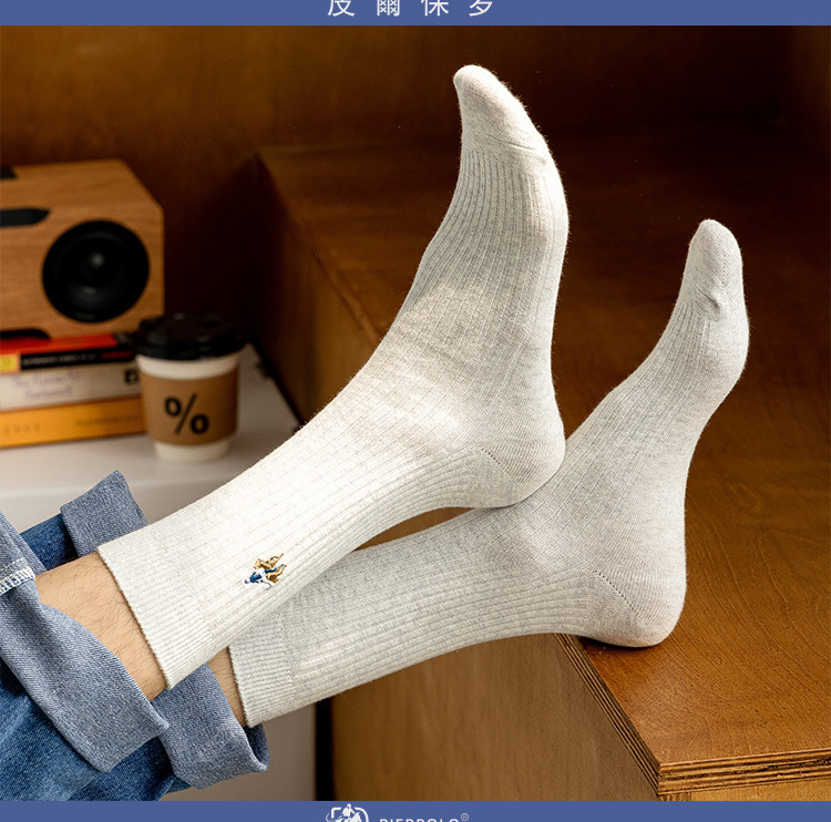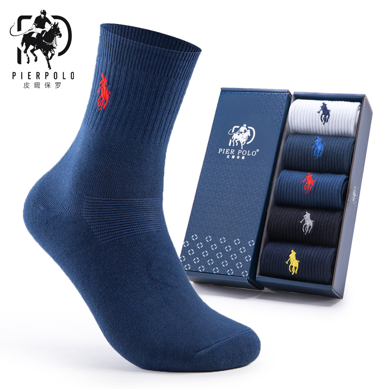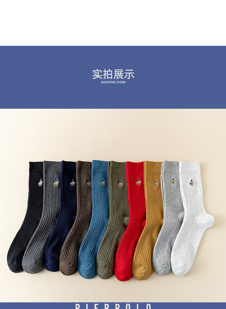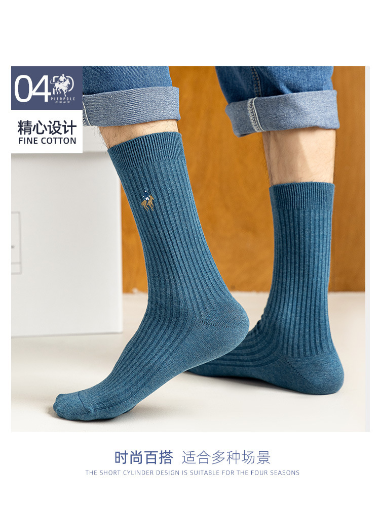 ピアポールビジネスソックス古典的な純色四季靴下男性吸汗通気刺繍精練綿中筒男性靴下