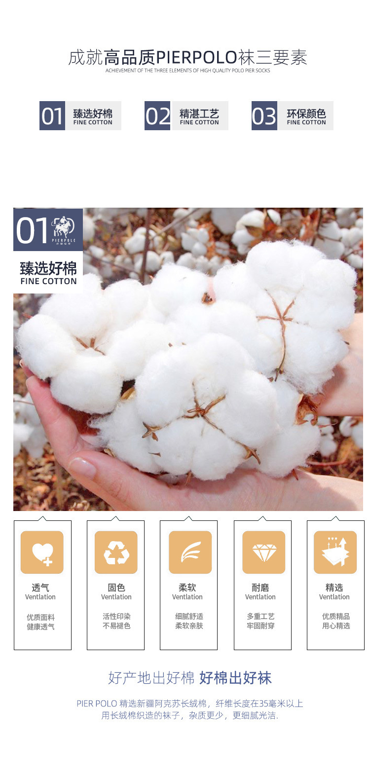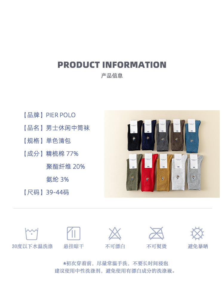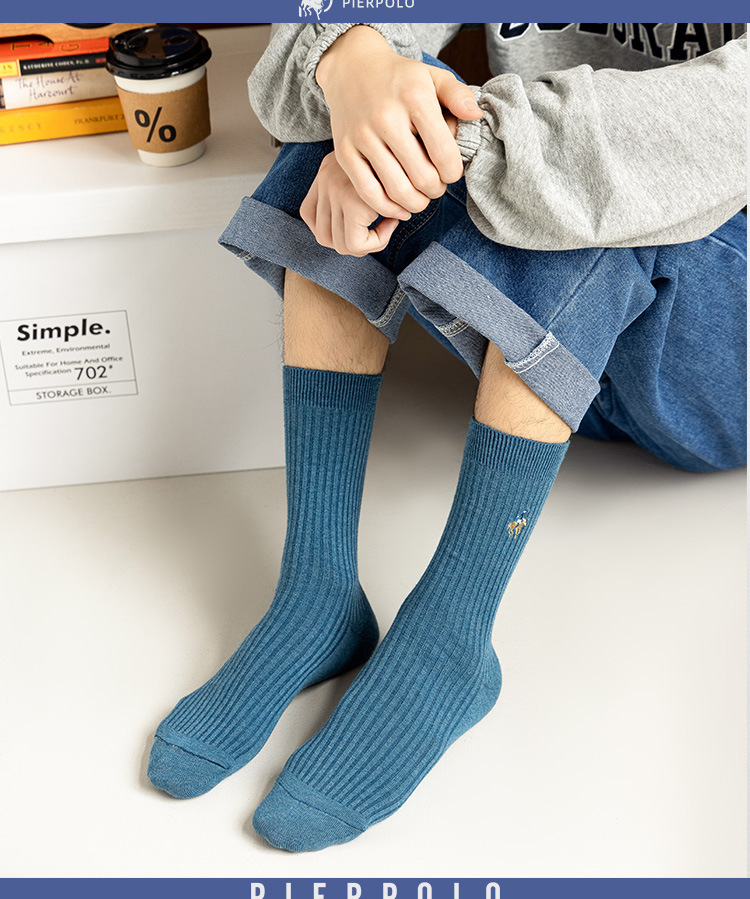 PIERPOLO ポールメンズビジネスソックスコーマ綿四季通勤靴下二本針ミッドチューブカジュアルメンズソックス卸売