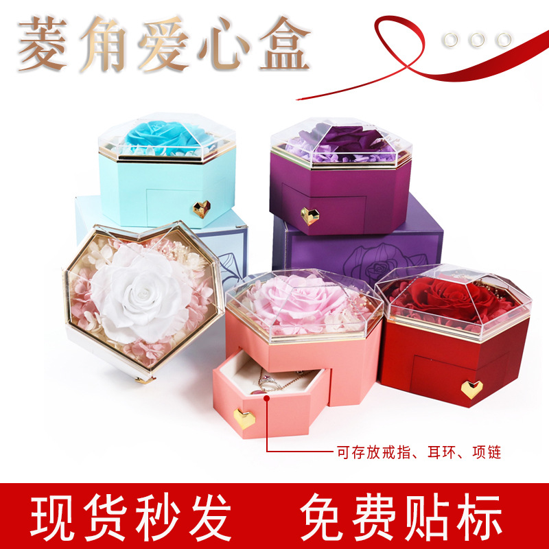 跨境爱心永生花礼盒饰品收纳首饰盒轻奢高级感 项链收纳礼品盒