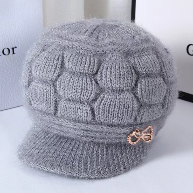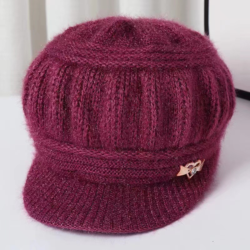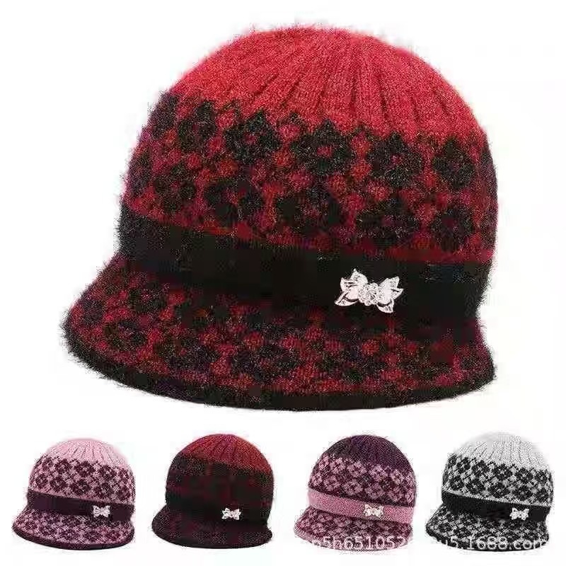 冬の新型中高年帽子ニット毛糸帽女性とベルベット保温耳保護帽母祖母帽