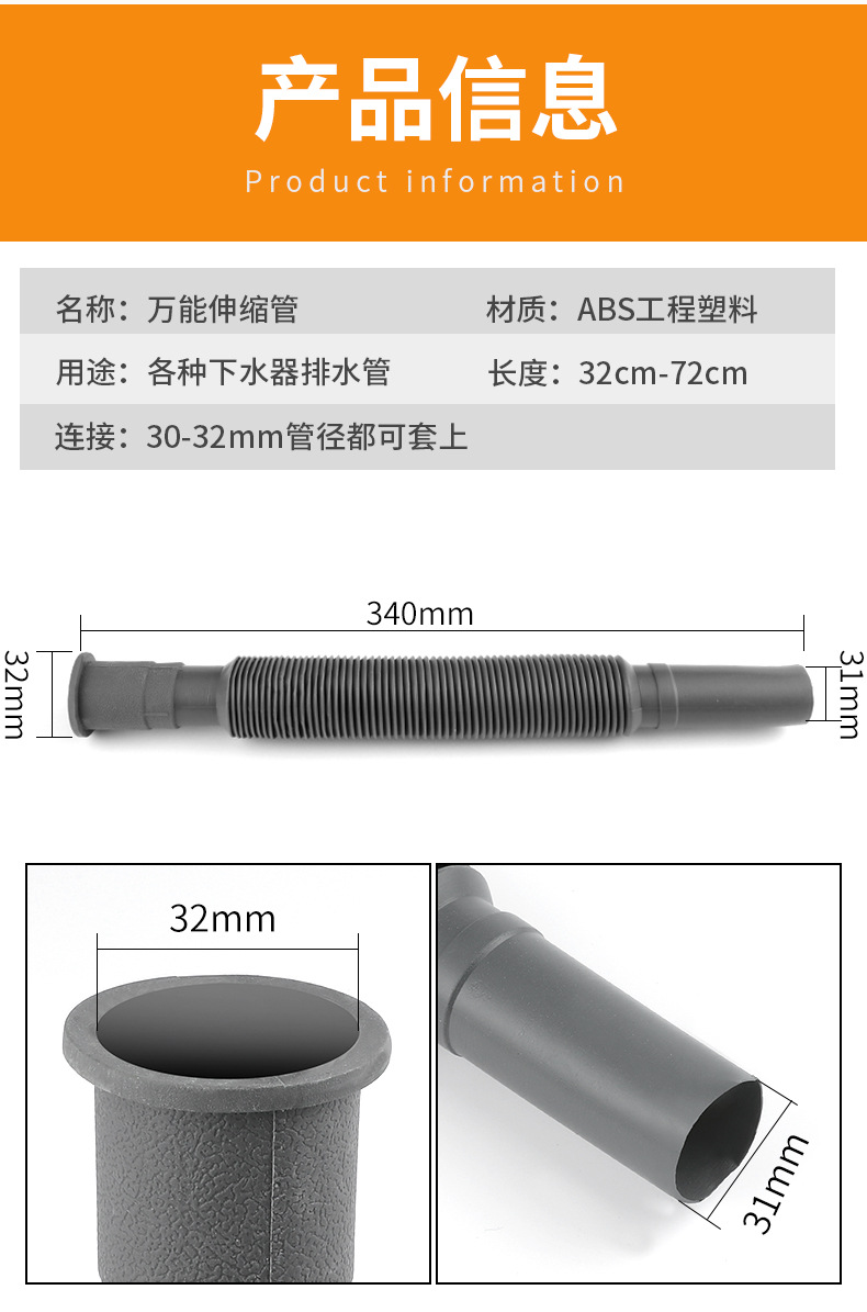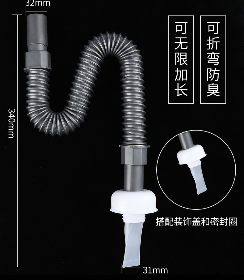 鋼線下水管洗面器下水伸縮管防臭排水管鋼線ゴム洗面器下水管延長管