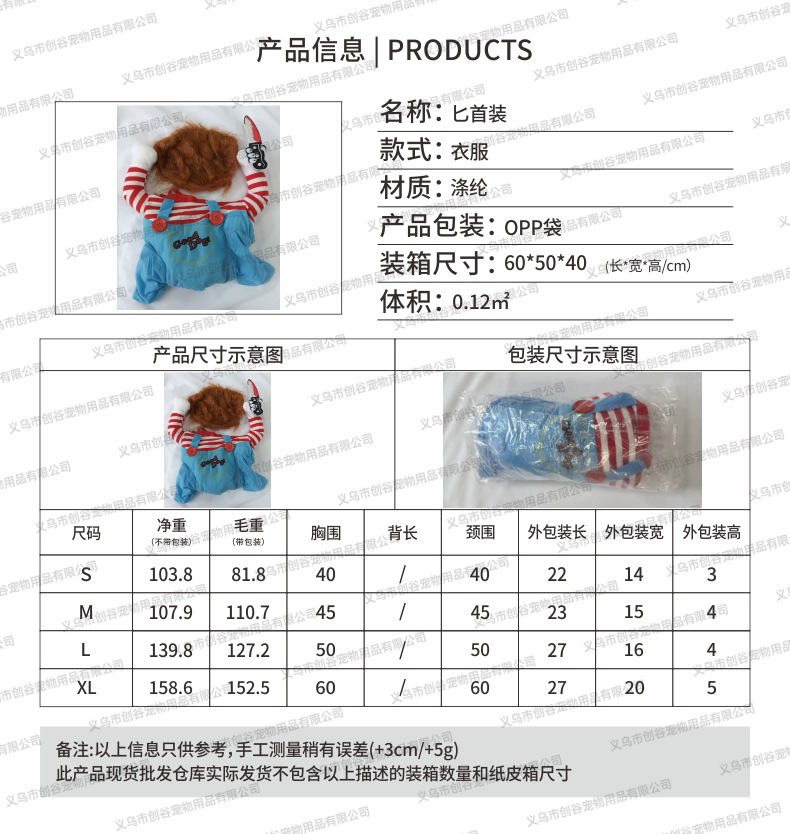致命娃娃宠物变身装万圣节狗狗拿刀匕首装小狗亚马逊跨境衣服批发