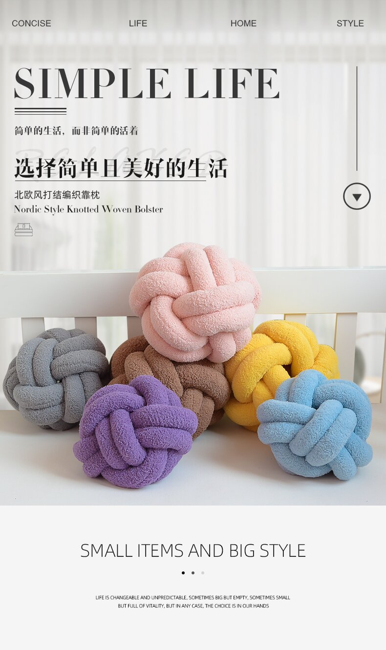 跨境手工编织羊羔绒打结球靠枕客厅沙发创意球形抱枕家用床头靠背