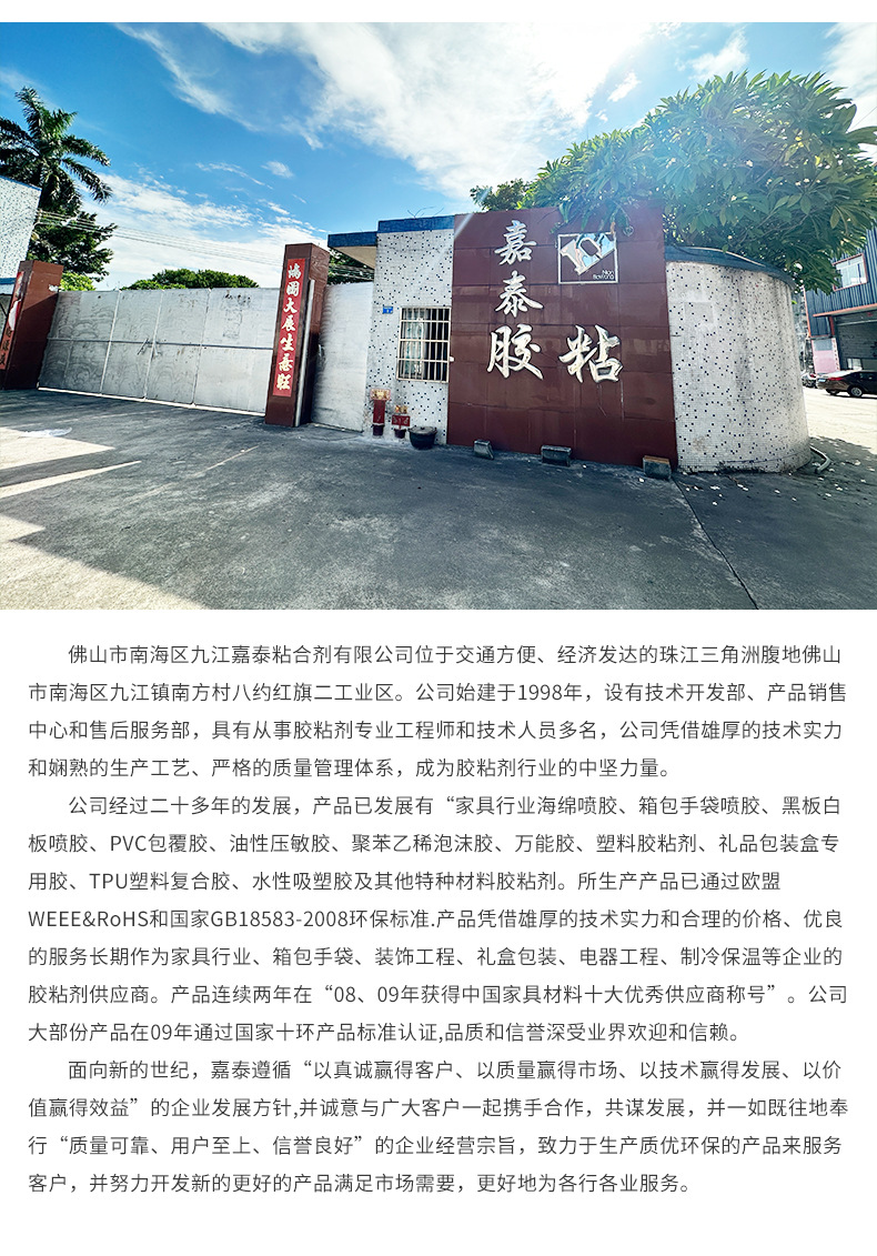 3.本胶粘剂产品是化工产品,要求远病童孩、火种、水源。在使用、运输、存放时都应防止暴晒和远离明火。并请放置在符合国家有关消防条例及化工产品储存条例的场所。
