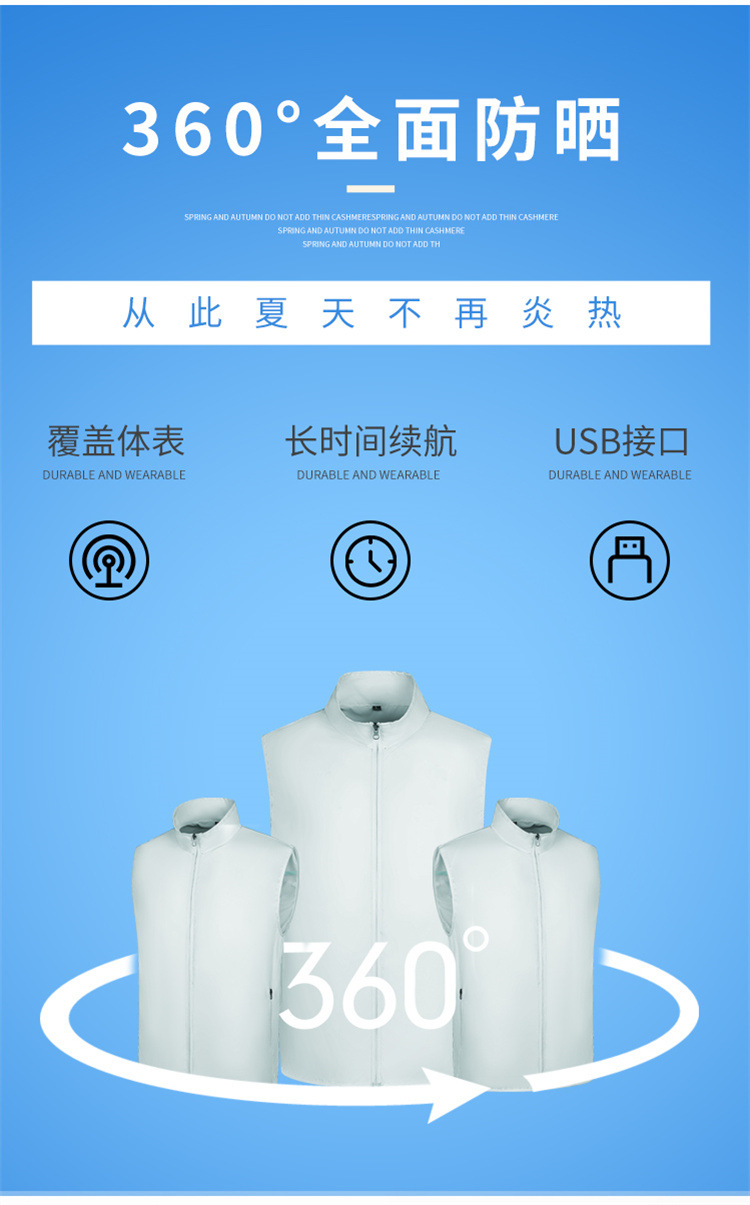 夏の冷却ファン服男性科学技術エアコン服充電冷凍レジャー薄手ベストベストベスト日焼け止め作業服