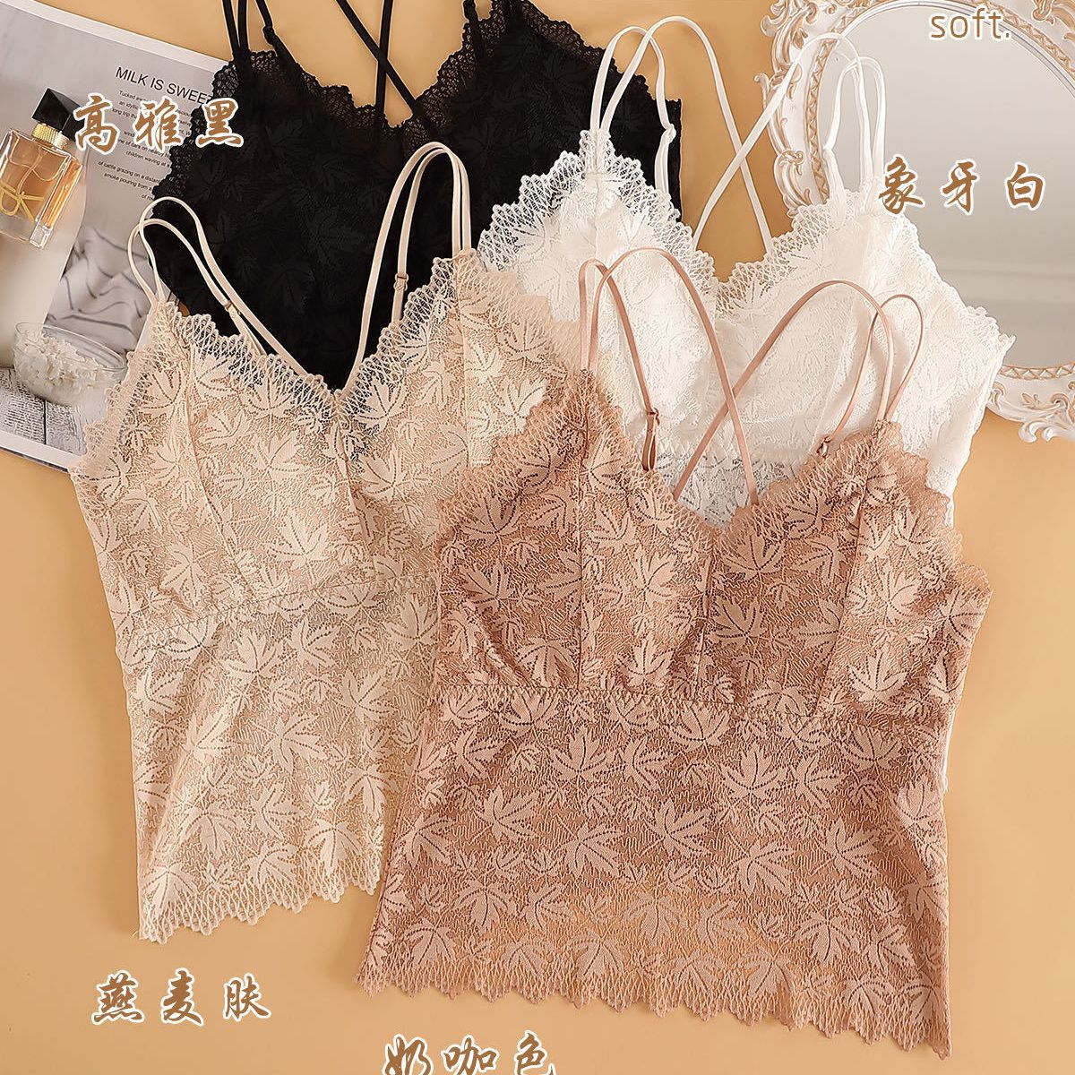 1508 新製品美しいバックレースサスペンダートップ女性の夏薄い小さな胸プッシュアップシームレス胸パッドボトミングベスト