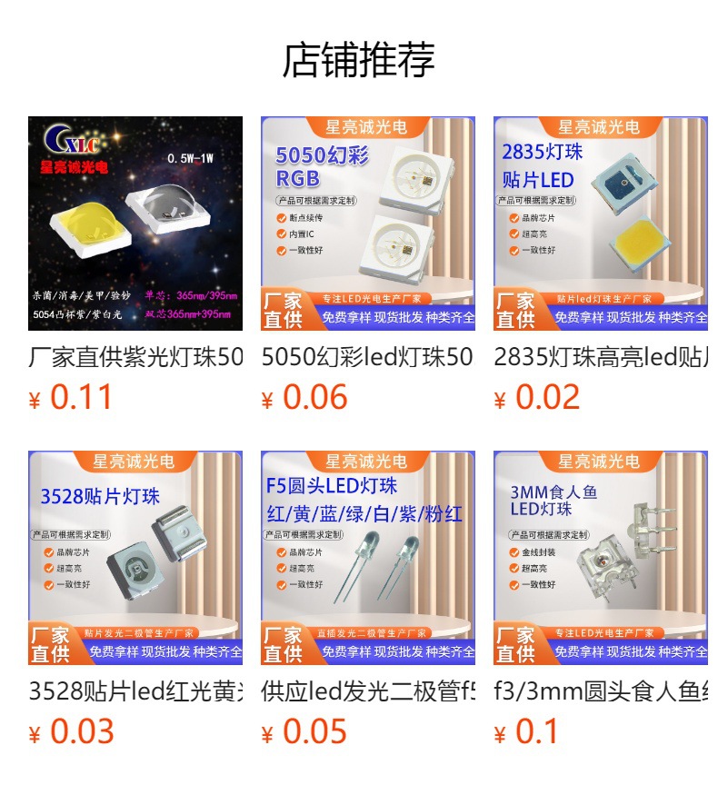 工場直販発光ダイオード麦わら帽子ランプビーズ赤色光黄色光青色光緑色光白色光紫色光ピンク LED ライト