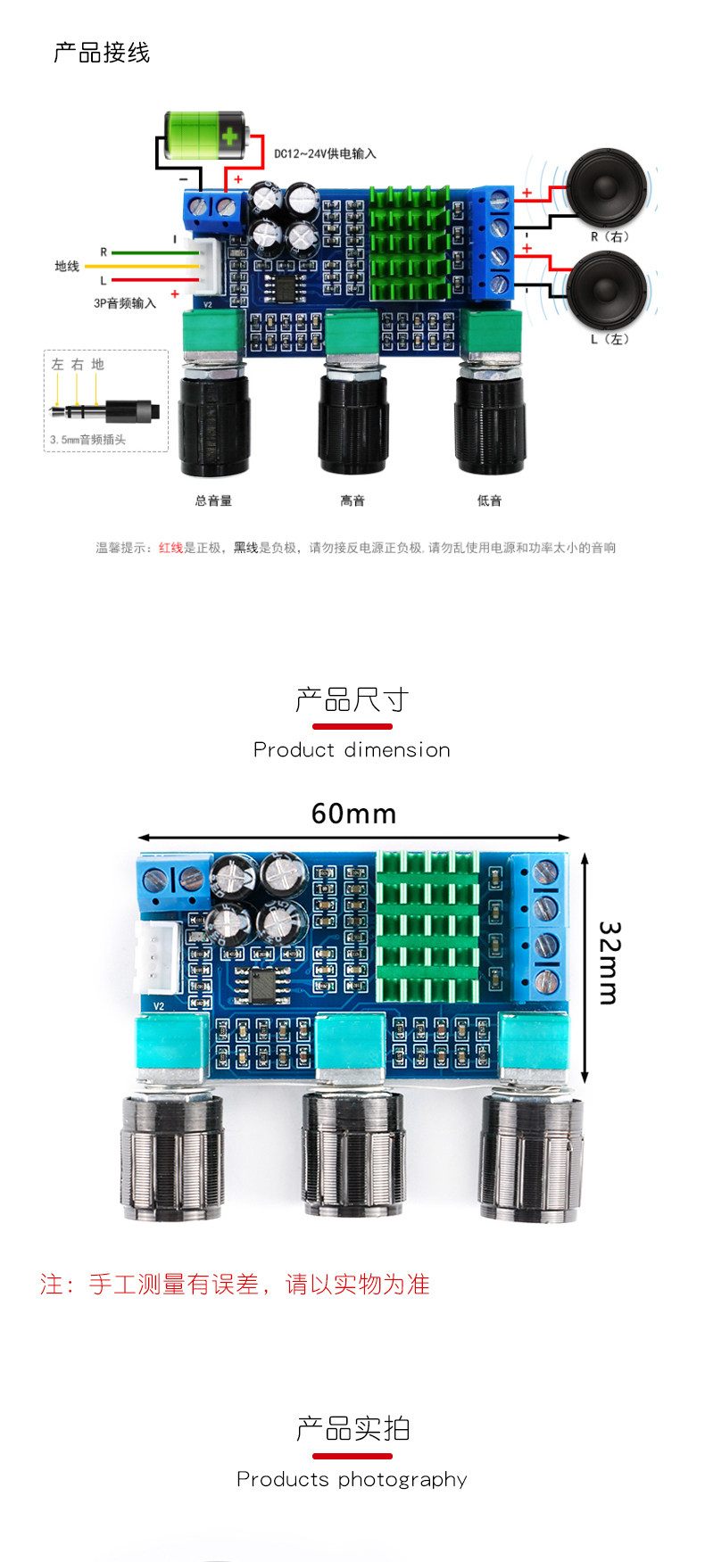 Tpa3116ブルートゥース5.0ハイパワー2.1重サブウーファデジタル功放板12-24v完成板カバー付き