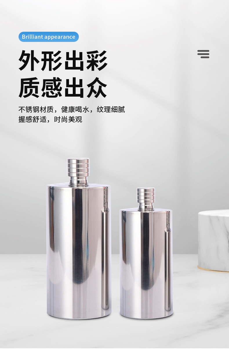 メーカーは304ステンレス製の徳利を1斤2斤提供して、水筒を厚くしてロシアの円柱形の白い瓶を持っている