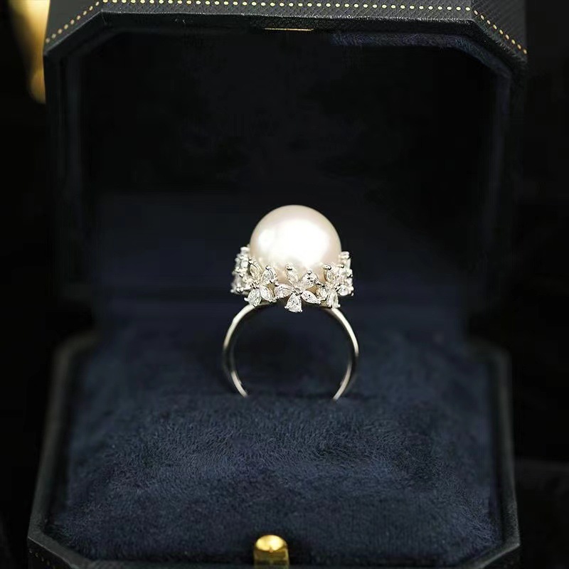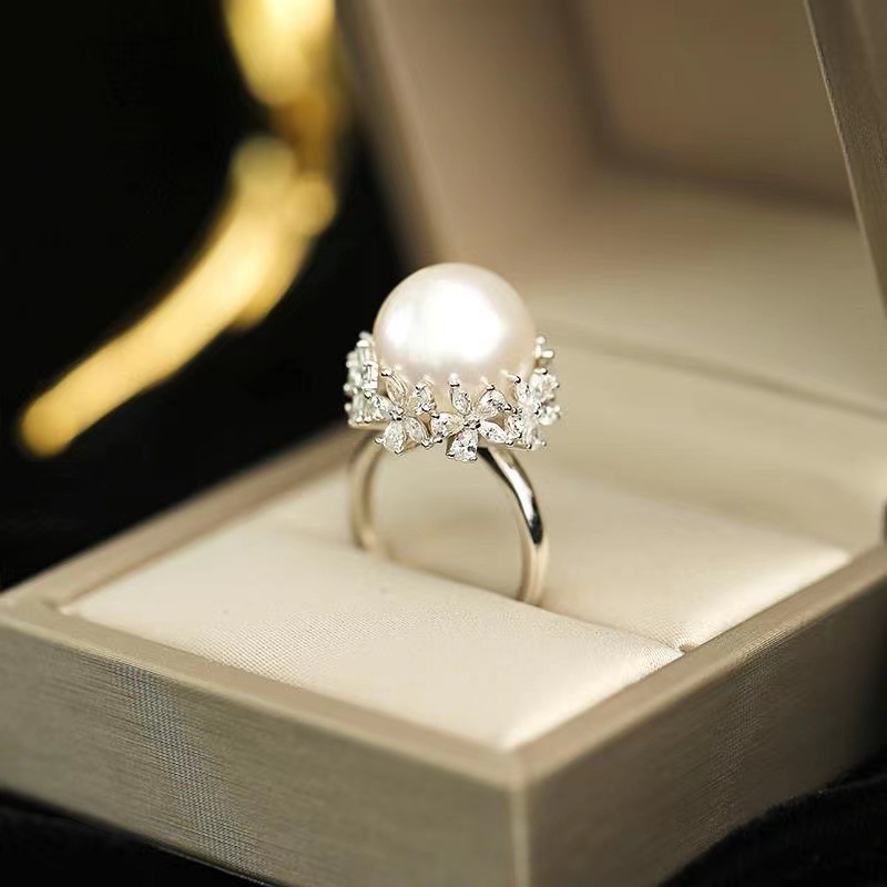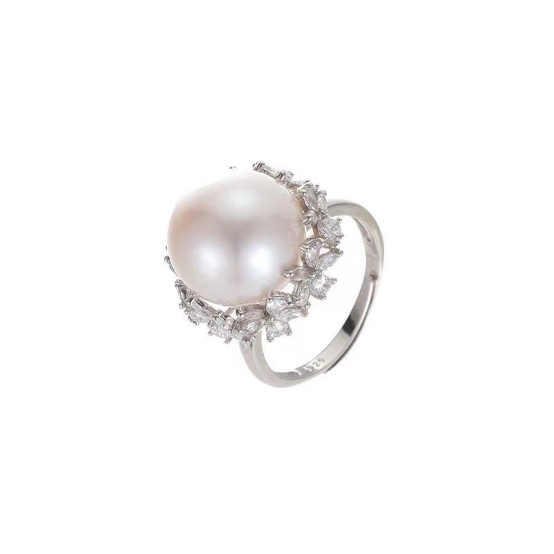 バラの天然淡水真珠の指輪は豪華で高級感があります。