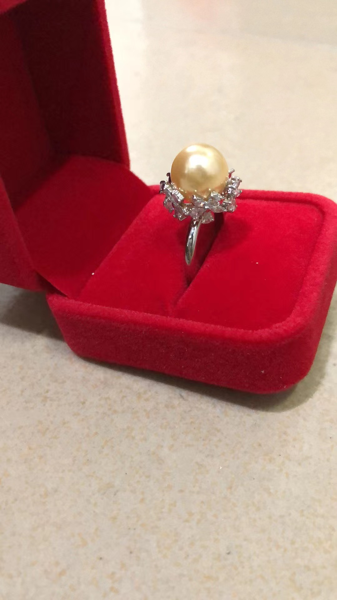 南沙金真珠の指輪は金メッキされています。ジルコンは正円をはめ込んでいます。
