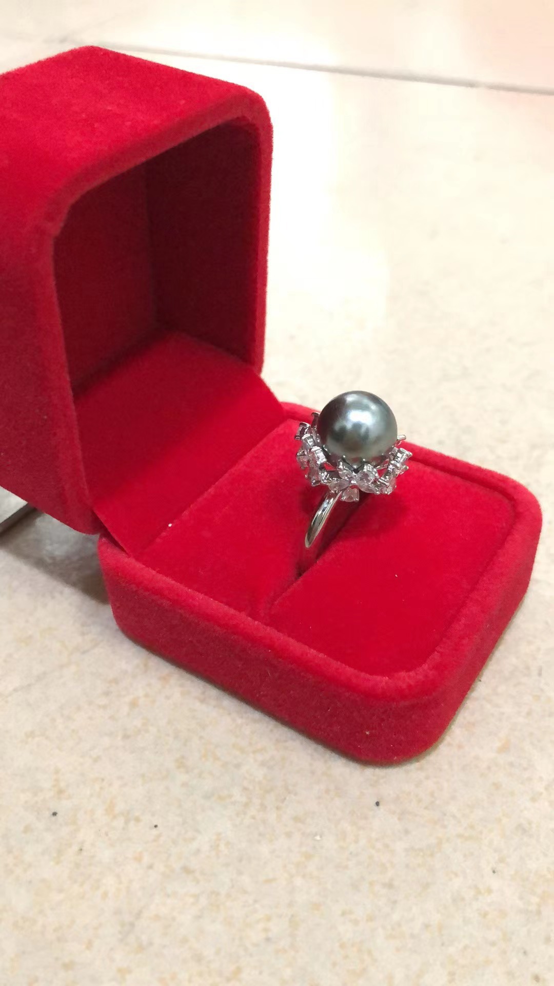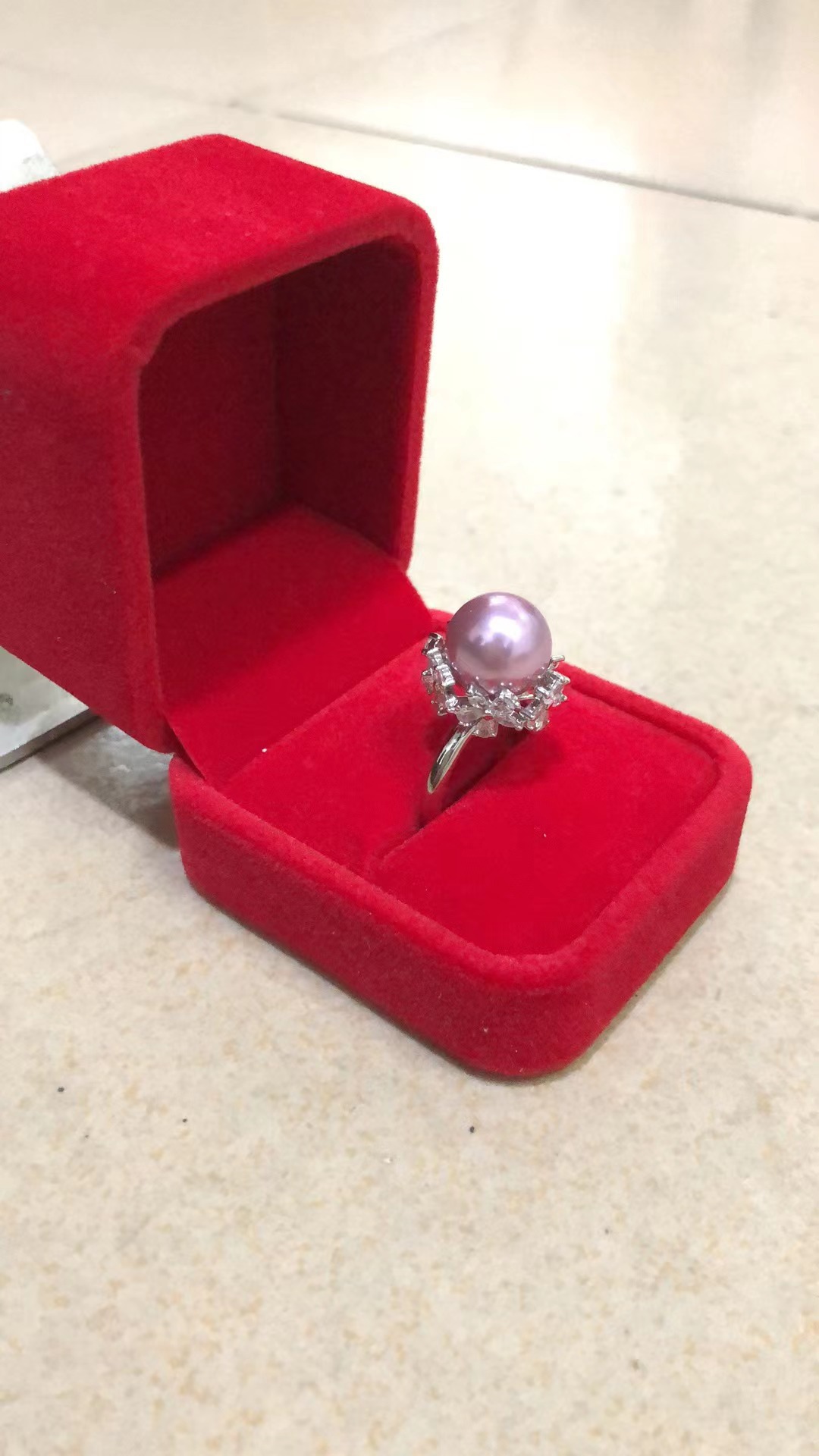 大粒10-12mm天然淡水真珠指輪真円エジソン妖紫深紫純銀強光女