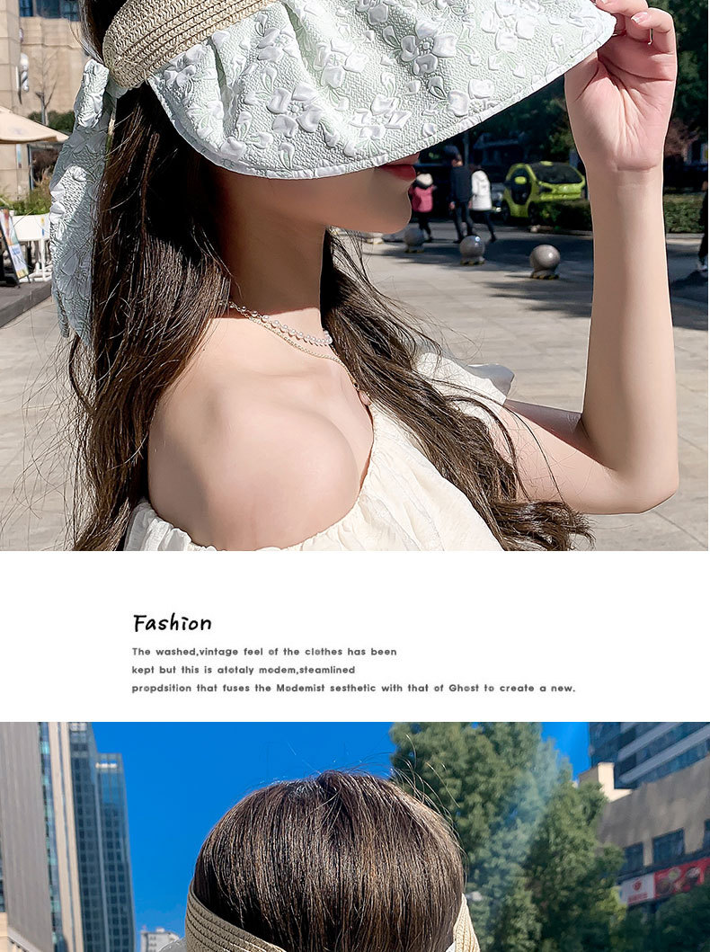 特大つば麦わら帽子さん夏の日焼け止めは帽子に沿って海辺の蝶結びのビーチ帽の日よけ帽子の太陽帽です。