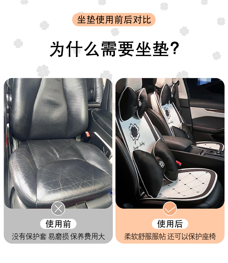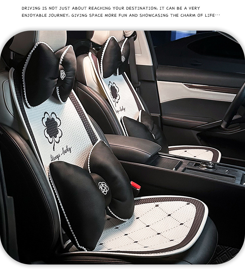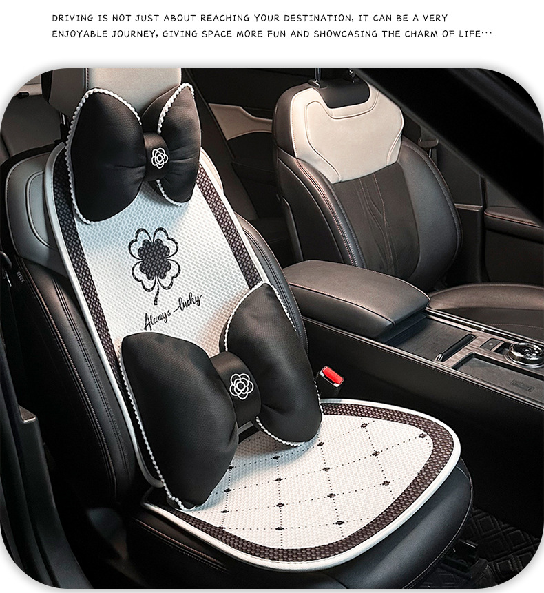 自動車クッション氷糸プリント四葉草車載通気シングルシートクッションファッション女神自動車クッション夏