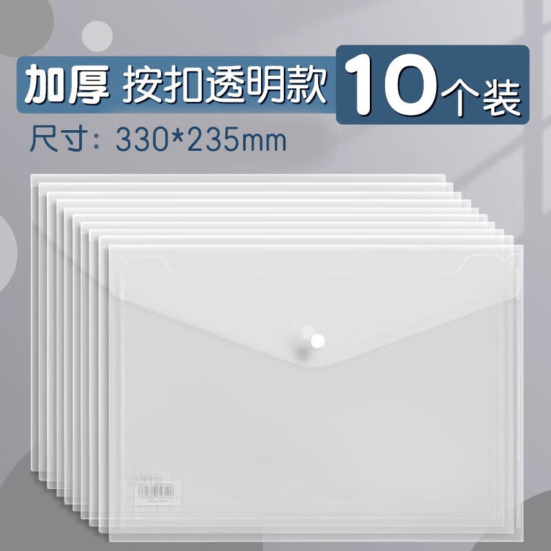 得力A4文件袋透明按扣试卷收纳袋文件收纳学生办公加厚大容量