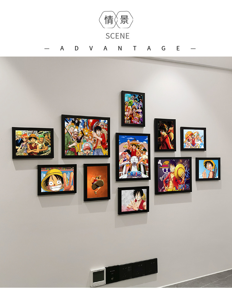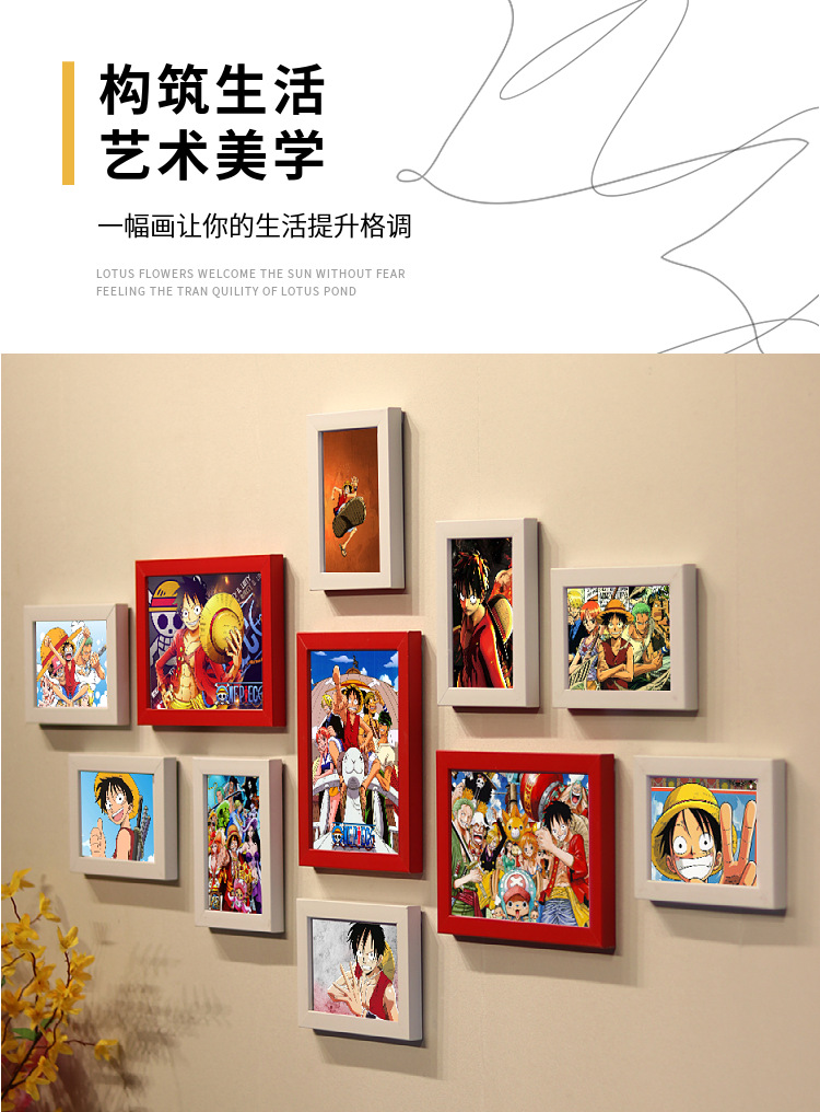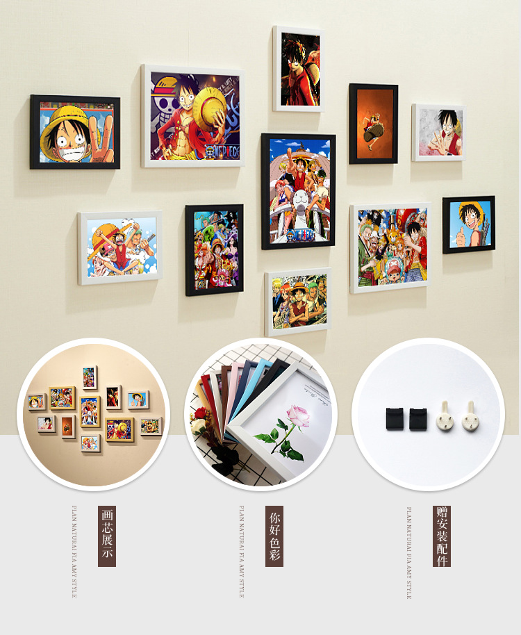 ワンピースの装飾画の掛け絵のアニメの組み合わせのフォトフレームの背景の壁の壁画の写真の壁の装飾画の壁の絵のフレームの壁