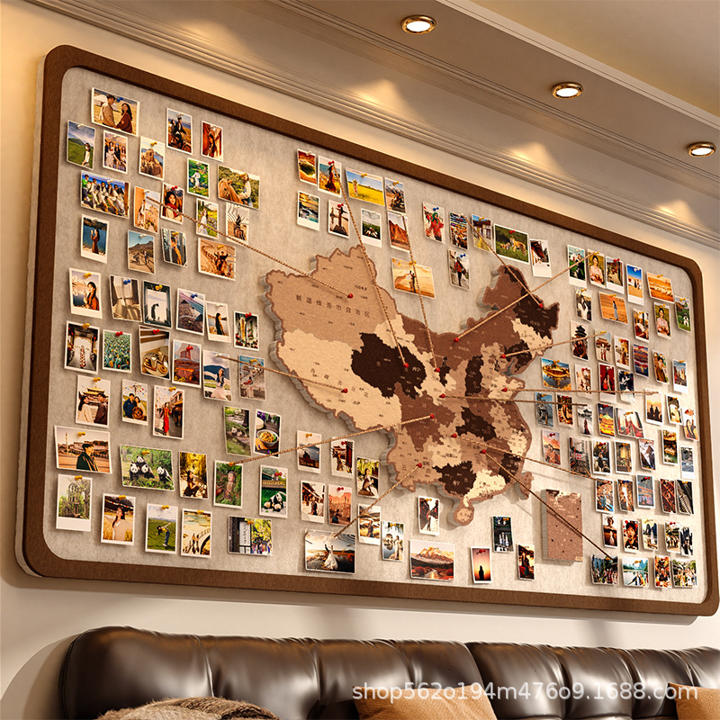 免打孔照片墙毛毡板旅行照片墙中国地图足迹打卡玄关客厅背景墙