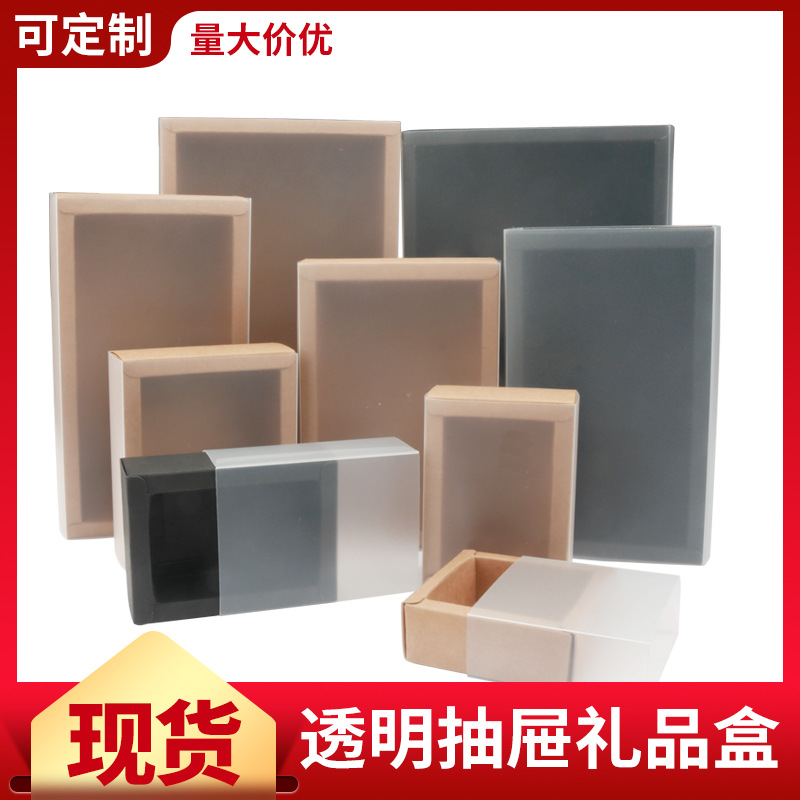 メーカー現物ドライフラワー茶葉花茶牛皮紙箱pvc透明フロスト引き出しギフトボックス牛皮紙箱
