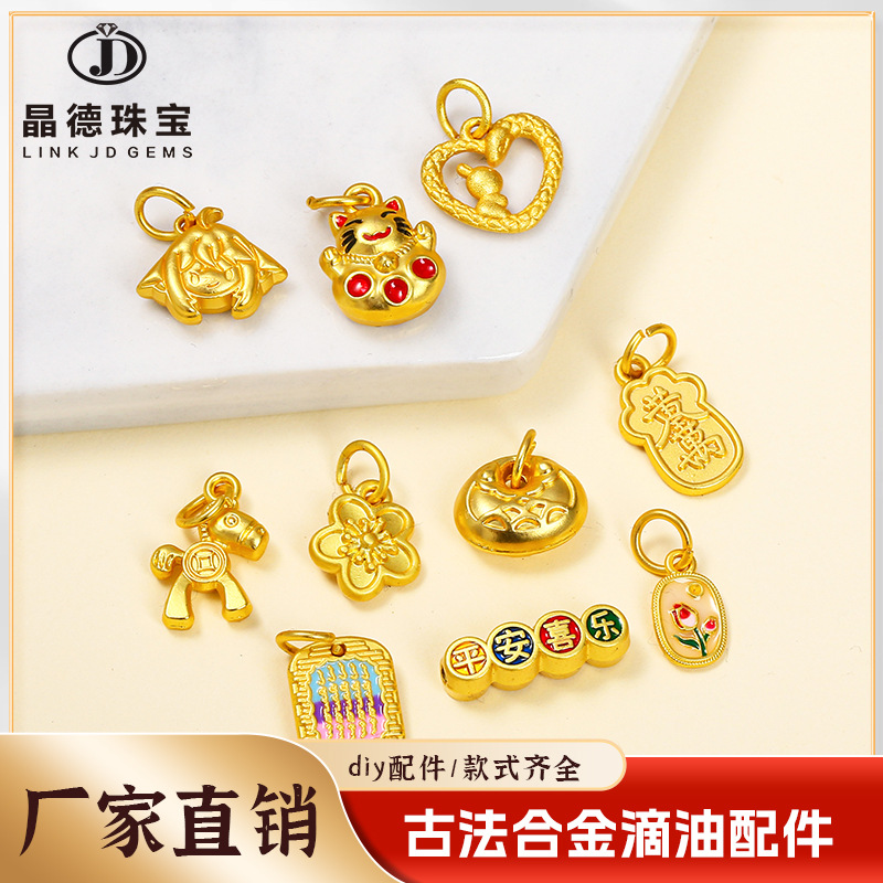 晶德珠宝 沙金古法金招财纳福小滴溜diy手链饰品合金配件吊坠批发
